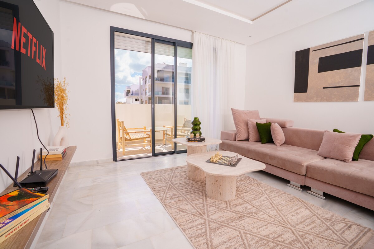 Découvrez notre luxueux appartement à Bouznika Costabeach parfait pour les familles, où les voyageurs d'affaires. Ce logement moderne de 2 chambres comprend un salon élégant avec trois télévisions, Wi-Fi fibre optique, un espace de travail et une cuisine entièrement équipée. Profitez des deux terrasses, de la climatisation et des commodités de la résidence avec piscine, parking et sécurité 24h/24. À quelques pas de la plage et des attractions locales. Réservez pour un séjour exceptionnel !