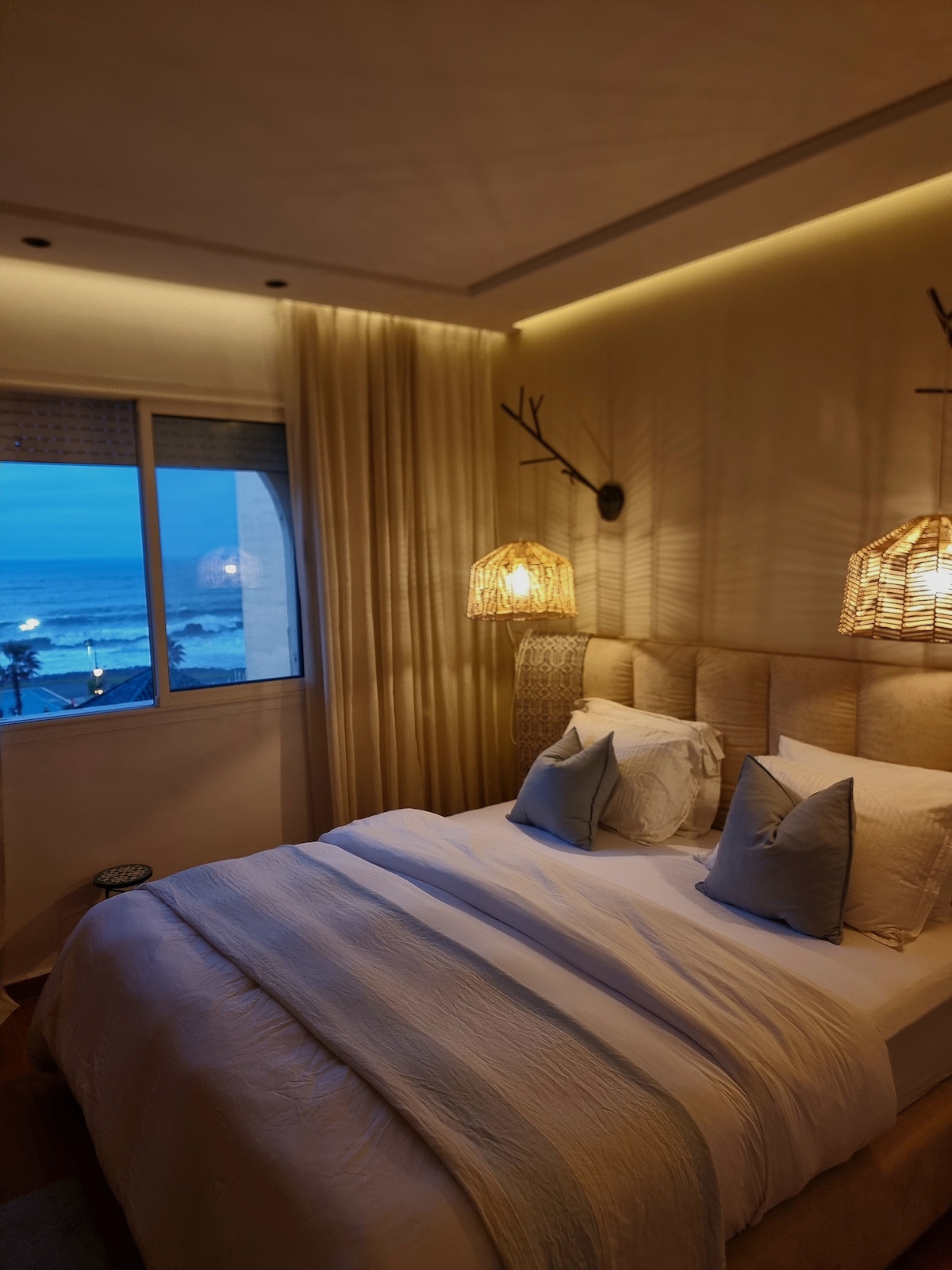 ★ Appartement de Luxe Face à la Mer - Bouznika ★ Envie d’un séjour avec le confort d’un hôtel 5 étoiles à un prix accessible ? Ne cherchez plus, réservez dès maintenant ! 🌟 Confort, Élégance 🌟 Profitez d’un appartement haut de gamme idéalement situé dans une résidence sécurisée, à quelques pas de la plage et des attractions principales de Bouznika. ✅ Connexion fibre optique ultra-rapide ✅ Parfait pour les vacances ou les déplacements professionnels ✅ Cadre paisible, sécurité 24h/24