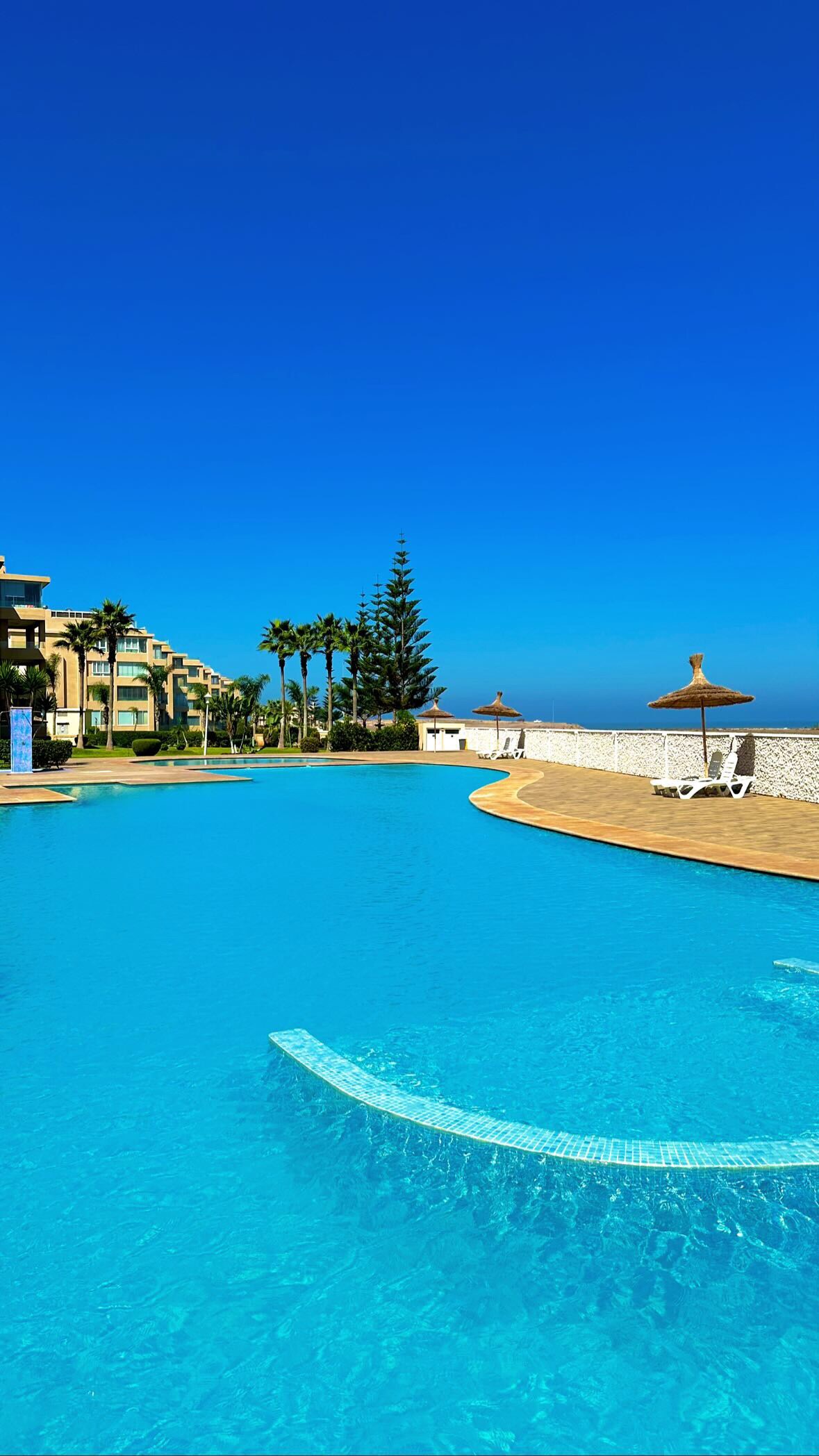 Beau Rez de jardin,,au sein du complexe balnéaire Bahia Golfe Beach ,comprenant 3 chambres,salon spacieux climatisé,2sdb,cuisine bien équipée,toute les pièces donnent sur jardin et terrasse offrant fraîcheur et ambiance chaleureuse au logement . Fibre optique.2 bicyclettes à votre disposition.parking . Une piscine disponible toute l année . Accès direct à la mer, une corniche aménagée de 3km , plage privée,hôtel Vichy,Golf club House MARJANE à proximité même des livreurs Glovo Mc Do sont dispo