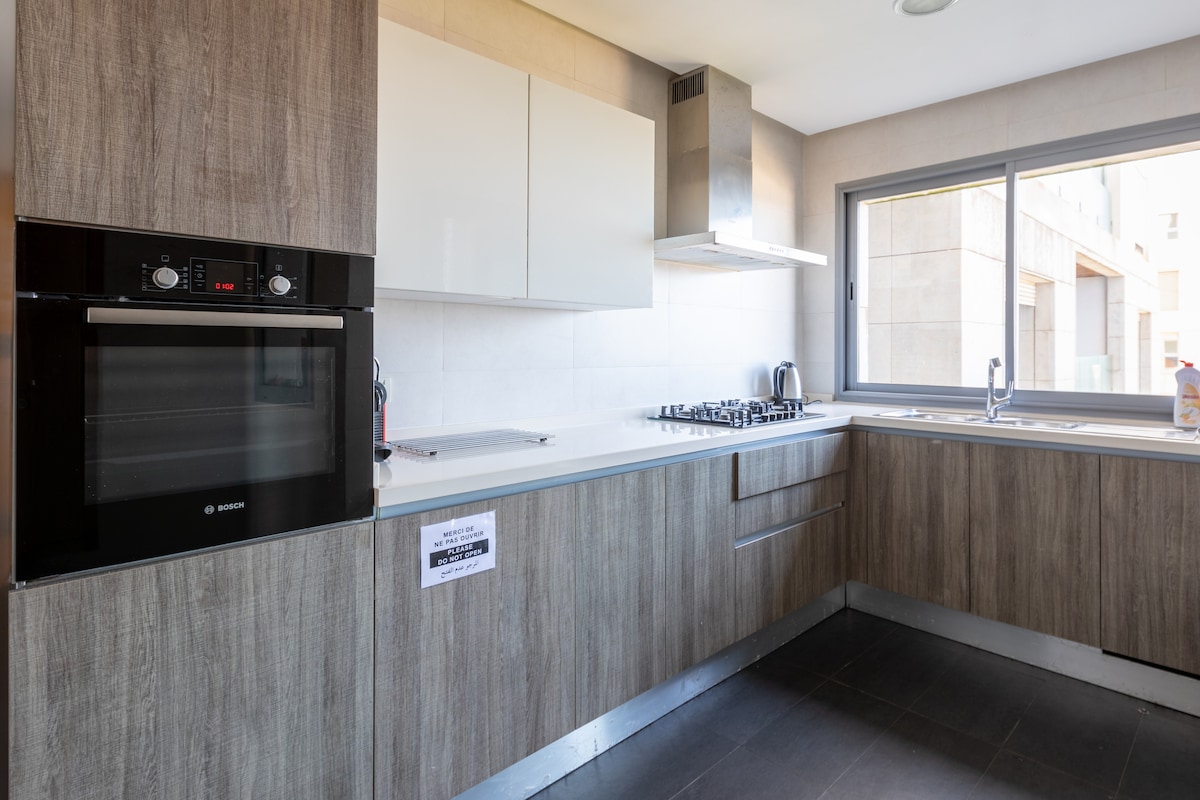 Profitez d'un nouveau logement décoré et vivant de la ville de Mohammedia. Entièrement équipé et d'une superbe vue sur la mer depuis la terrasse en orientation SUD. L'appartement est dans une résidence sécurisée (24/24 H) au cœur du parc de Mohammedia. - 5 mn à pied de la plage - 2 KM de la gare - 25 km de la mosquée Hassan II Cet établissement met à votre disposition un ascenseur, un service de sécurité et nous présentons une facilité de check-in et check-out grâce à notre serrure connectée.