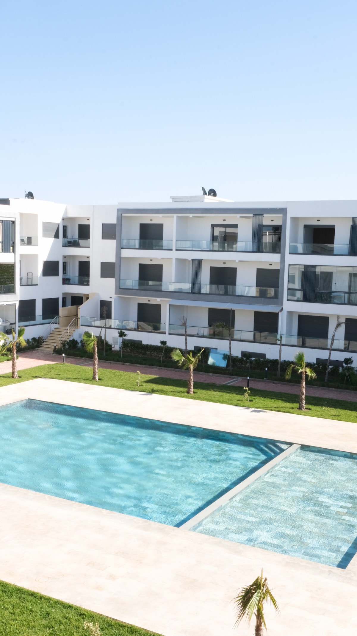 Découvrez notre luxueux appartement à Bouznika Costabeach parfait pour les familles, où les voyageurs d'affaires. Ce logement moderne de 2 chambres comprend un salon élégant avec trois télévisions, Wi-Fi fibre optique, un espace de travail et une cuisine entièrement équipée. Profitez des deux terrasses, de la climatisation et des commodités de la résidence avec piscine, parking et sécurité 24h/24. À quelques pas de la plage et des attractions locales. Réservez pour un séjour exceptionnel !