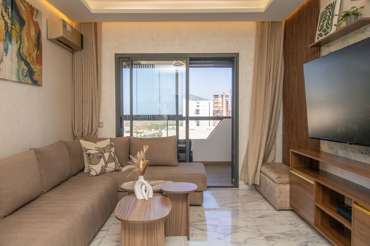Ilova company is proud to offer this bright and fully equipped appartement on first floor of a quiet &secure neighborhood Mohammedia central. 5 mins drive to serene beaches & steps away from supermarkets, cafés, restaurants, train station, with easy access to major highways. Enjoy a modern living room with traditional Moroccan touch, fully equipped kitchen, balcony, 100 Mbps fiber-optic Wi-Fi, and adedicated workspace, perfect for remote workers. Free and secured parking is available. Book Now
