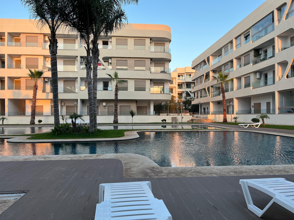 Important : pour chaque réservation je vous offre le petit déjeuner au @poundsfitkitchen le meilleur restaurant de la ville. Très bel appartement neuf dans une belle résidence calme l’appartement est seul à l’étage avec vue sur piscine . Idéal pour voyageurs et familles désirant profiter des belles plages de mohamadia. Ils y trouveront leur bonheur avec l’accès au piscines et aux différents airs de jeux pour enfants ainsi qu’aux terrains de tennis et football.l’accès à la plageà 5 min à pied