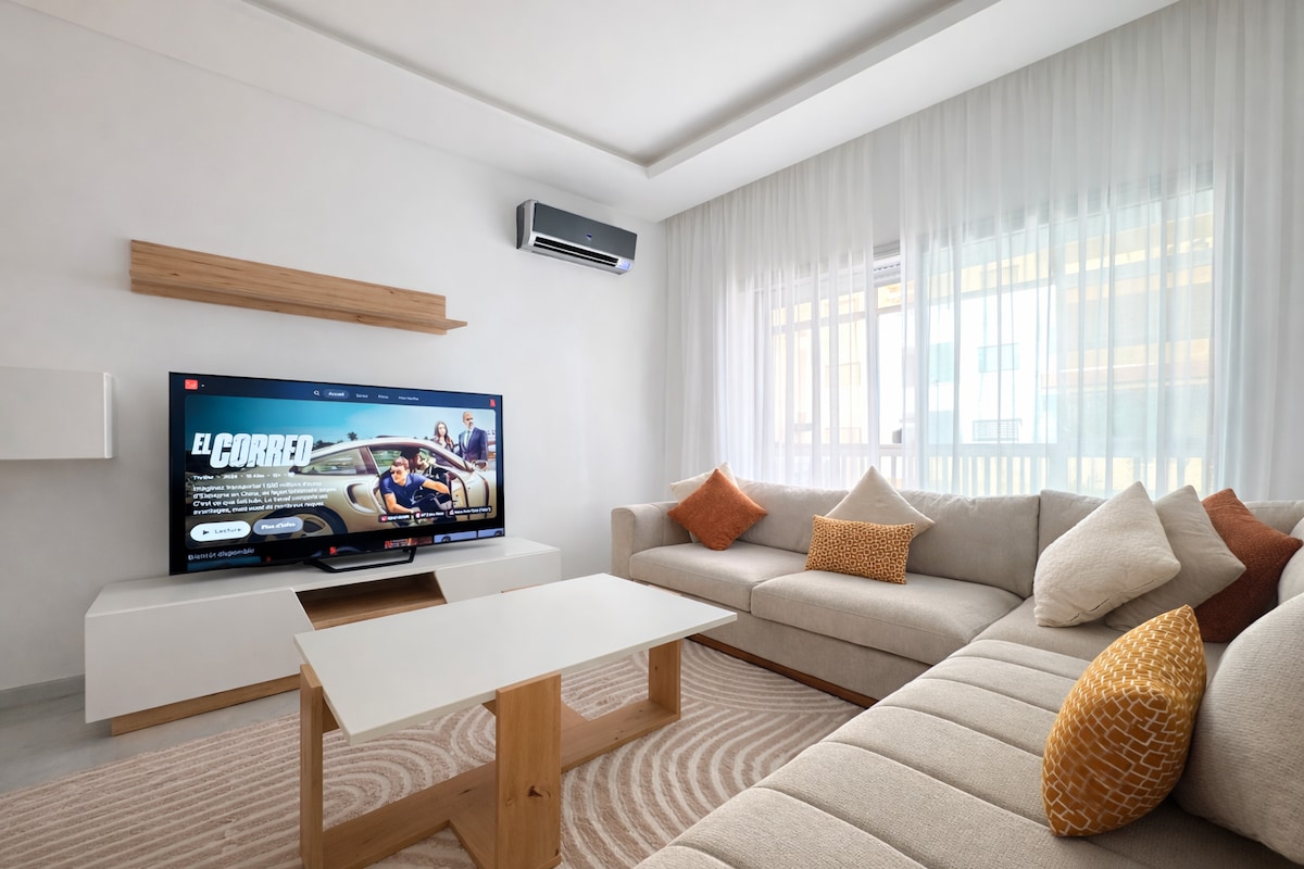 Charming apartment in Bouznika, just 5 minutes from Kasbah Beach and the golf course. Perfectly located between Rabat and Casablanca Close to restaurants, cafés, shops, and sports fields. Wi-Fi,/ Receiver with beIN Sports subscription and many prepaid international channels /hot water,/ equipped kitchen, and a quiet, safe Whether you are a couple, a family, or friends, this is the perfect place to combine relaxing on the beach with activities like jet skiing and surfing.