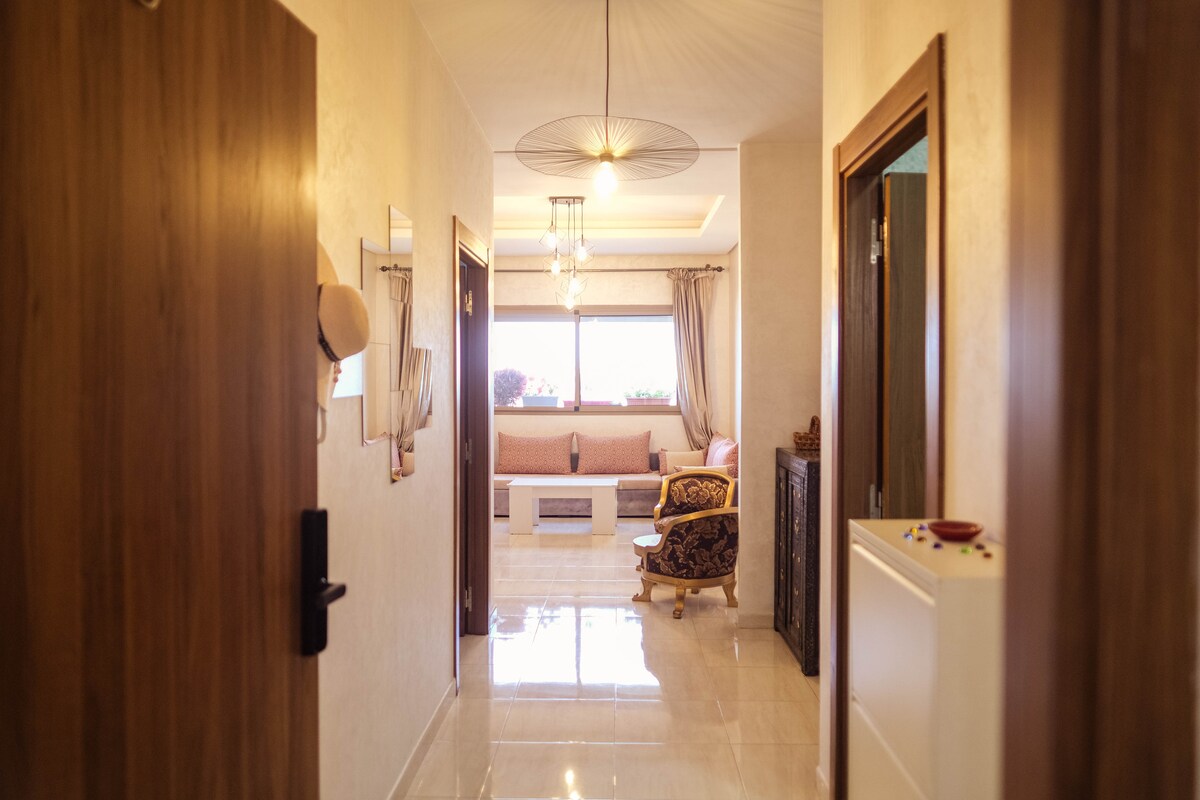 Bienvenue à Skhirat : 8 min plage 🚗, 30 min Rabat, 25 min stade Moulay Abdellah (Coupe d’Afrique) et 1h Casablanca. Quartier calme et populaire. Voiture indispensable (ou InDrive 24h/24). Appartement lumineux de 65 m² : 2 chambres confortables, cuisine équipée, petit balcon, salon avec TV. Idéal familles/amis pour séjour paisible entre océan et capitale. Proche centre équestre, spot de surf et grand centre commercial. Conciergerie sur demande à l’hôte local (navette, petit-déj, conseils).