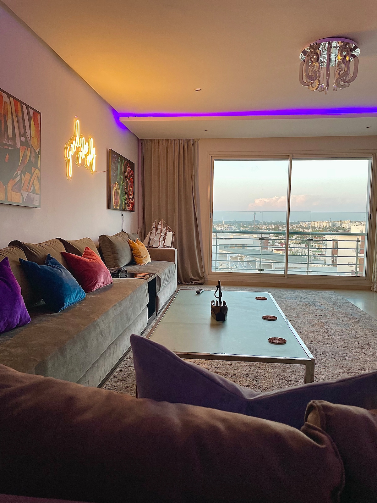 Découvrez notre luxueux appartement à Bouznika Costabeach parfait pour les familles, où les voyageurs d'affaires. Ce logement moderne de 2 chambres comprend un salon élégant avec trois télévisions, Wi-Fi fibre optique, un espace de travail et une cuisine entièrement équipée. Profitez des deux terrasses, de la climatisation et des commodités de la résidence avec piscine, parking et sécurité 24h/24. À quelques pas de la plage et des attractions locales. Réservez pour un séjour exceptionnel !