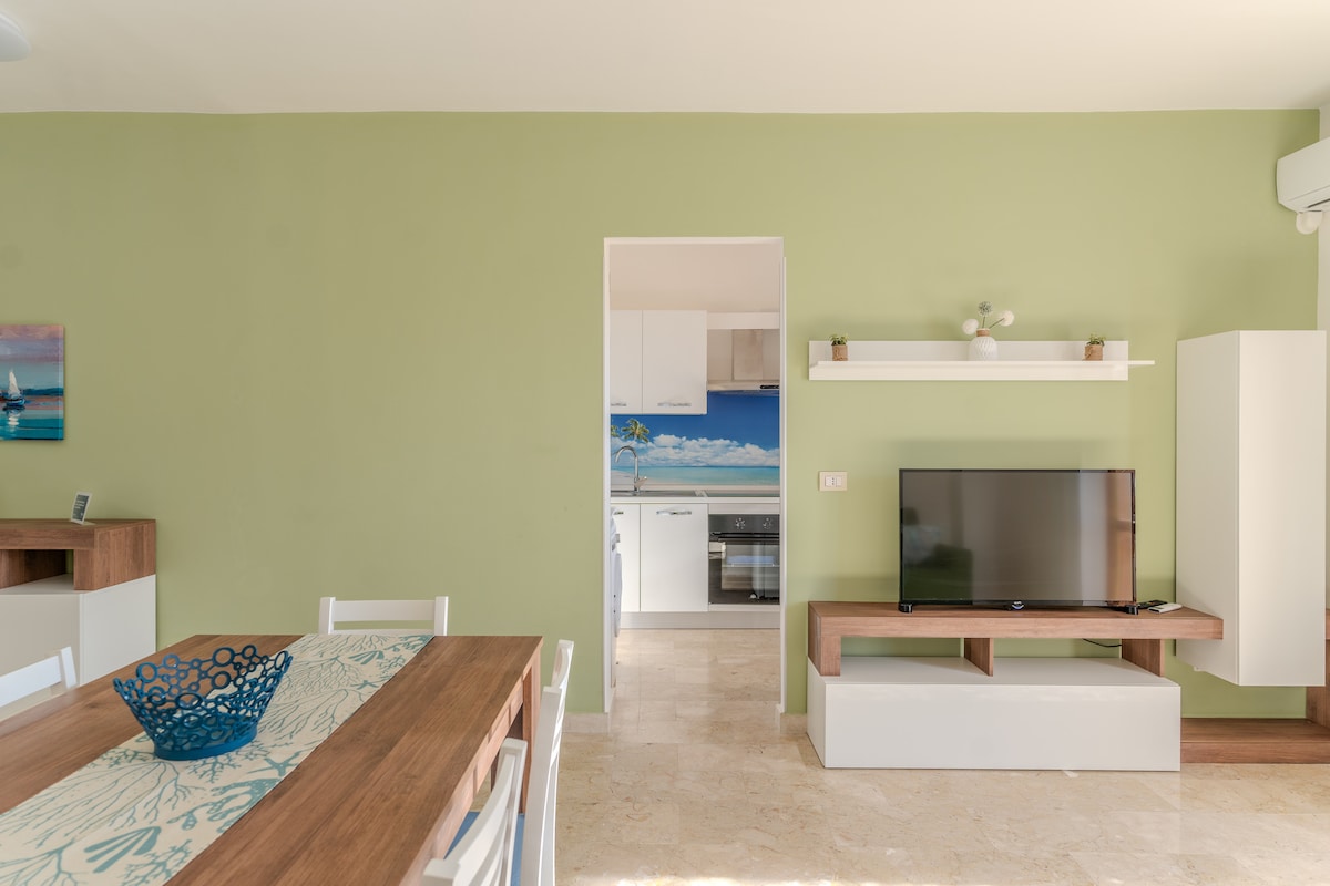 Appartamento al secondo piano di 120 mq interni +80 mq di terrazzo a 800 m dal mare. Ampio soggiorno doppio open space con possibilita di ulteriori 2 posti aggiuntivi su comodo divano letto, angolo studio e ping-pong, cucina abitabile con forno, una camera letto con culla e armadio, una cameretta, un bagno con vasca/doccia e lavatrice.splendido terrazzo vista mare-monti attrezzato di divanetti,ombrellone,dondolo,barbeque. Appartamento munito di condizionatori e possibilita di parcheggio gratuito