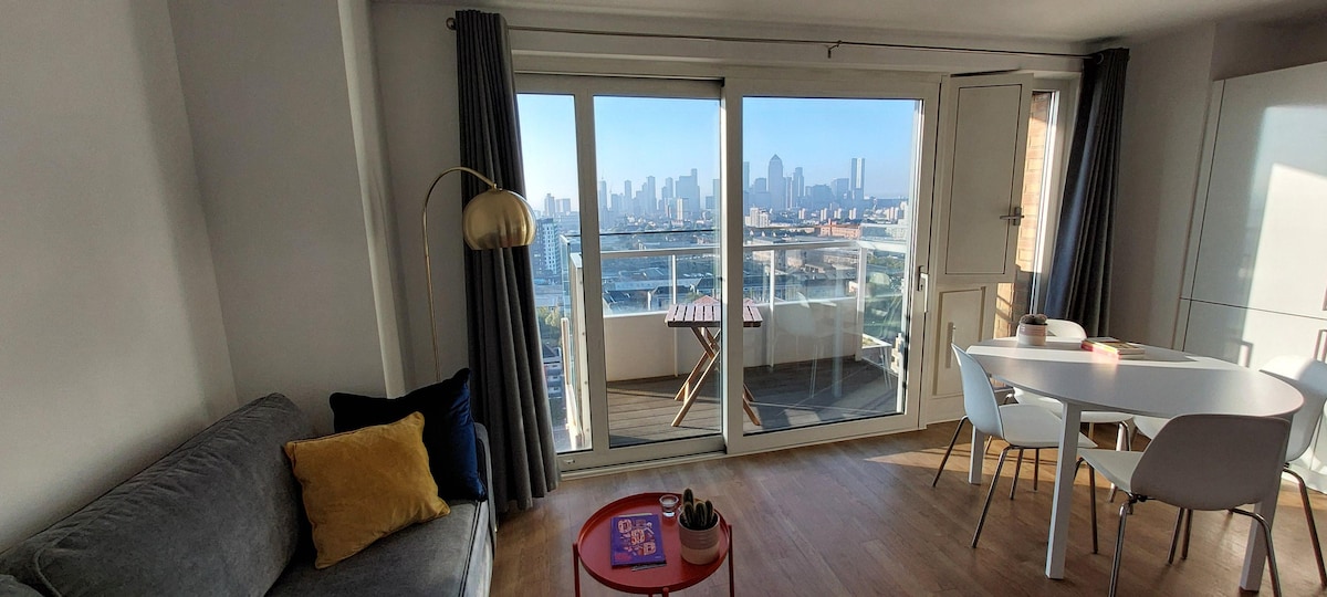 Welcome to my scandi top-floor flat with stunning views to the City in the heart of Hackney Wick! Whether you're traveling with family or friends, it's a fabulous space to share with two double bedrooms and two bathrooms. Hackney Wick offers a vibrant and eclectic neighbourhood with an array of restaurants, cafes, bars/pubs, boutiques, and parks. There are excellent transport links which make exploring London a breeze! Enjoy a stylish experience at this centrally-located place in East London.