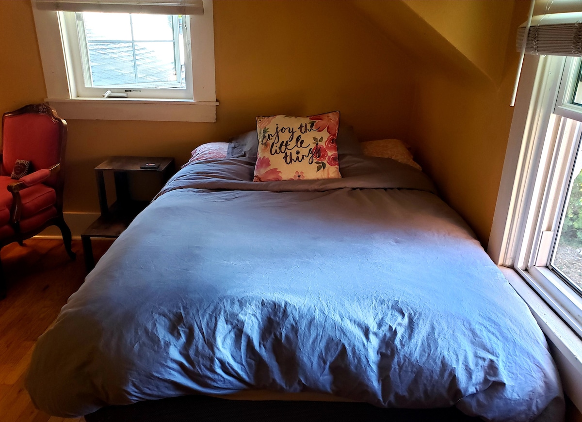 Take it easy at this self-contained getaway. Entrance at side of house, combination lock (which locks by itself after 60sec). Perfect for one, could fit two snugly if they share the twin bed. Low (6’ 2”)ceilings. Low shower. The plumbing rumbles when the pump runs. Outdoor areas are the only shared areas. Family members may go out the side door at times. The unit is pet friendly, you can bring your animal. If you are allergic to pets/are over 5’10” the unit might not be a good fit.