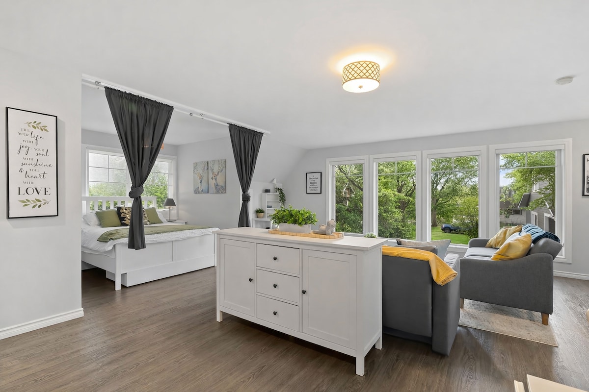 This trendy McGill Loft offers an immersive experience within the vibrant city of Calgary. Here you'll stay within a historic building in the highly sought-after neighbourhood of Inglewood. Perfectly situated next to the Elbow River and Bow River you will find beauty and adventure in every direction. If you're a food connoisseur, the Deane's House (one of Calgary's best restaurants) is right across the street. Let the magic of this iconic area capture you in this stunning, one-of-a-kind studio.