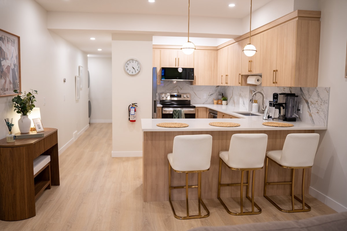 Private 1BR Suite | Full Kitchen Laundry Fireplace