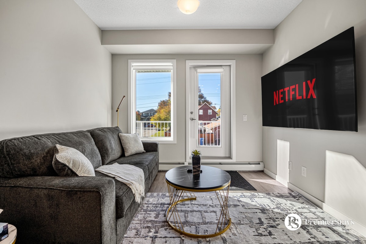 Nestled between bustling Chinatown and the East Village, this condo is immersed in artistic surroundings filled with creative professionals. Spend the day indulging at nearby local eateries, relaxing at a park overlooking Bow River, or exploring Calgary’s Entertainment District just a quick train ride away. Unwind in your own comfortable, beautifully designed space with water and city views, complete with in-suite laundry, comfortable beds, a balcony, and a grocery store just 3 mins drive away.