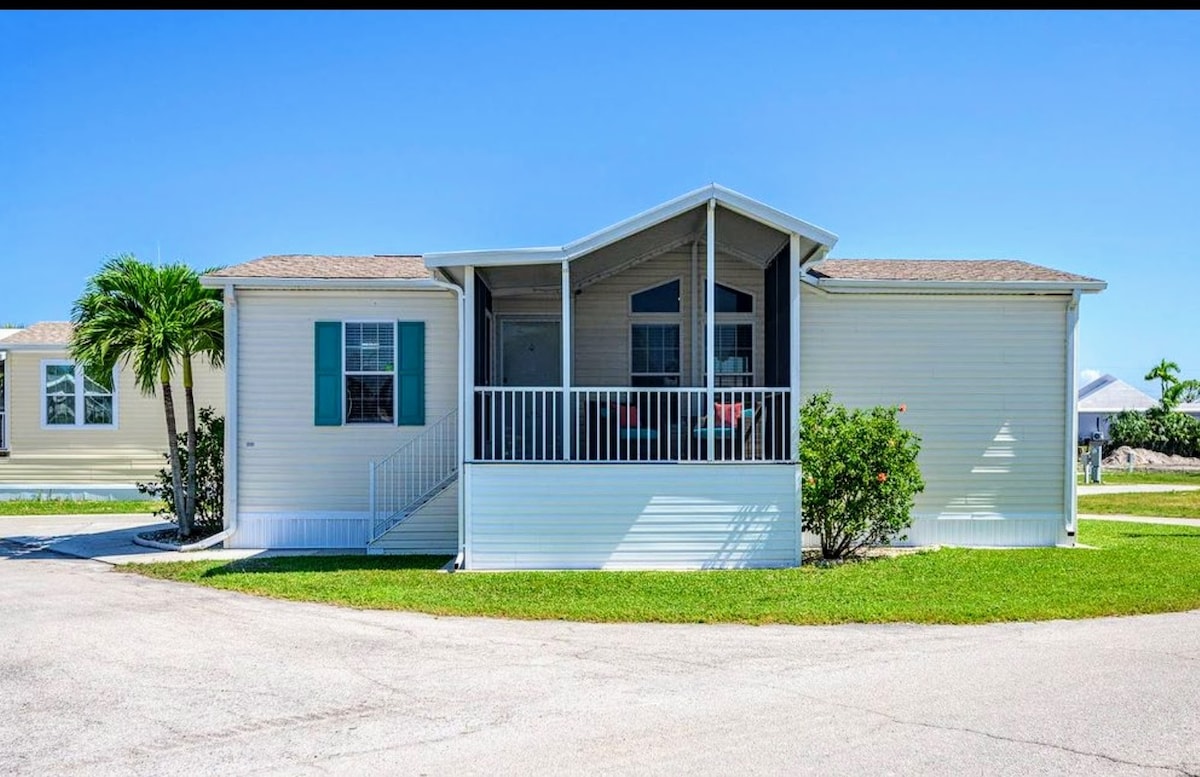 Located in Sun Retreats Fort Myers Beach (formerly Indian Creek), just 3 miles from Fort Myers Beach, Bunche, and Sanibel Island, and Margaritaville. The property offers amenities, including pools, pickleball, tennis, and numerous activities. It’s a great location, away from the main beach traffic but still close to shopping, and you can bike or walk to the beach. The trolley also stops right at the entrance. The bungalow features a fully equipped kitchen. Must be 35 to book, park rules.