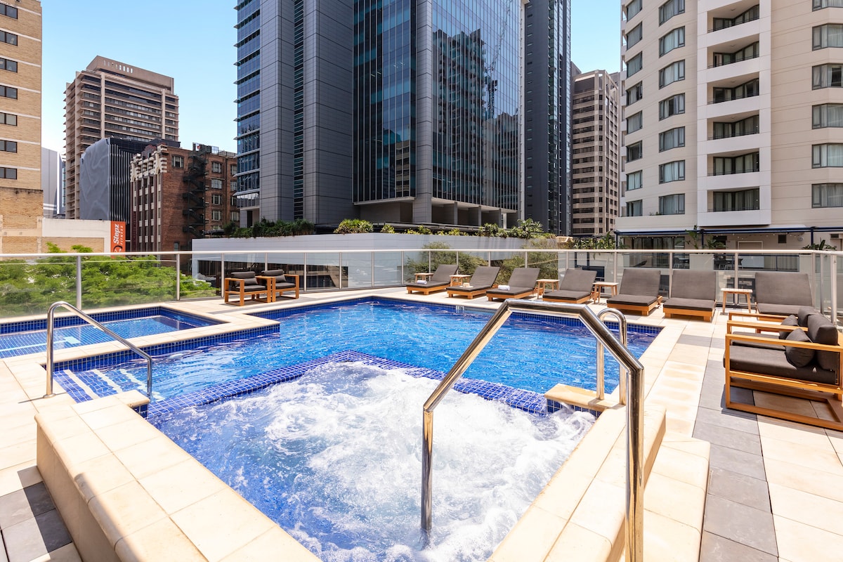 Welcome to Getaway Dwells' Serviced Apartment ✔ Modern and stylish setting with a fully equipped kitchen, comfortable bed + large sofa bed ✔ Free Underground parking for one car ✔ Fast & unlimited WiFi ✔ Moments from James Street, featuring Brisbane's best cafes, bars, restaurants, markets, and boutique shops ✔ Features an outdoor 20-meter lap pool and private relaxation garden that is perfect for a picnic or simply unwinding with a BBQ, outdoor lounge area, and sun deck The space