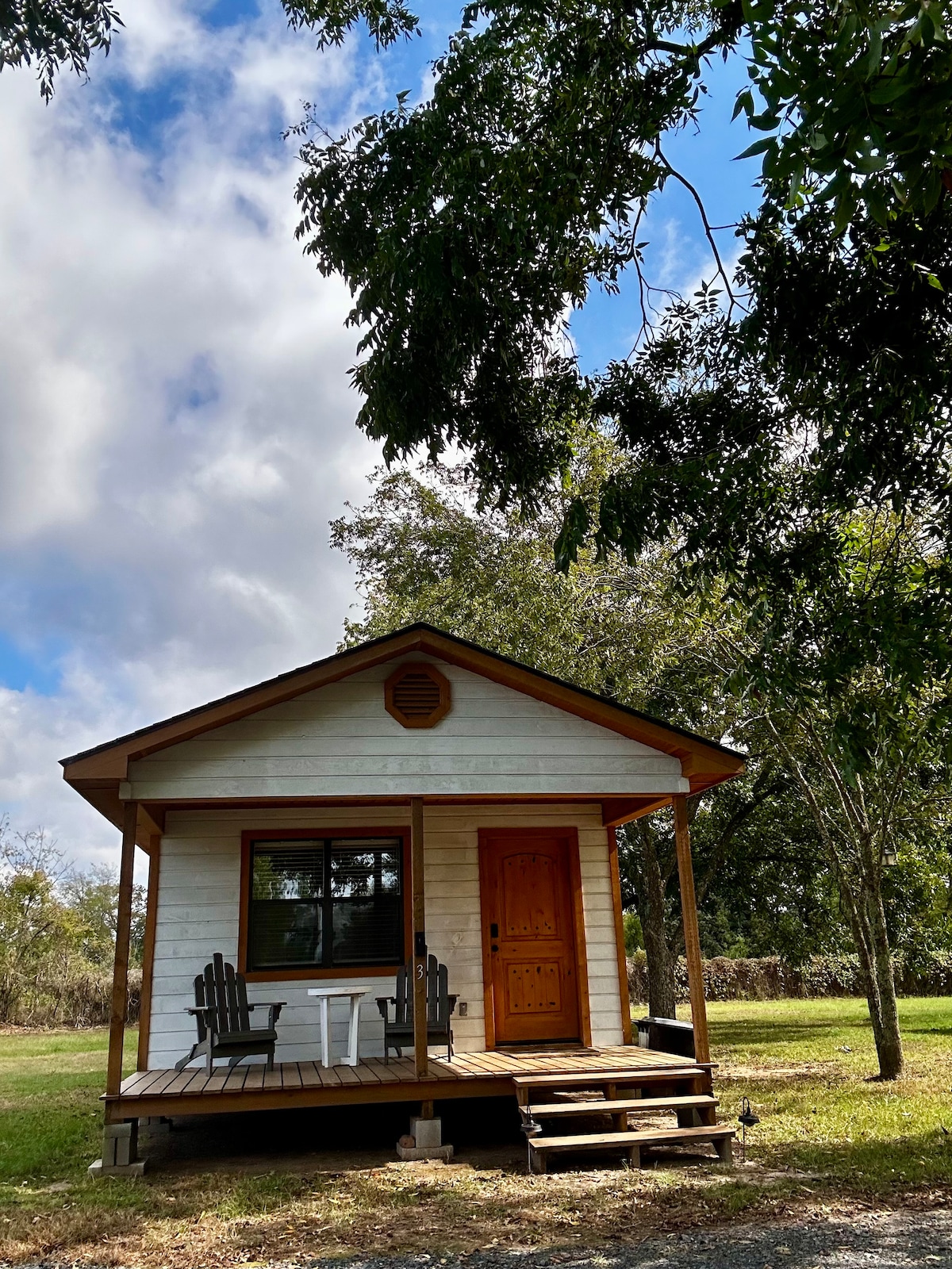 Our small cozy cabin, newly built in 2021, is stocked with all the essentials you'll need for your home away from home. We offer 1 bedroom and 1 loft, a fully equipped kitchen, free wifi, washer and dryer, a peaceful front porch, and a TV with access to Netflix, Disney+, ESPN+, Hulu, and more. We offer the best of town and country -- we are located in city limits for quick access to shops and restaurants, and other than our personal residence on the property, there are no neighbors in sight.