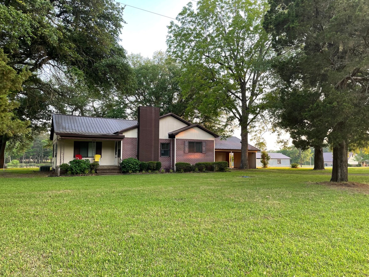 Take it easy at this unique and tranquil getaway. “Made in the shade “ 1950’s, 2 bedroom 1.5 bath home covered with beautiful shade, farm charm and much character with original hardwood floors. Quiet neighborhood, nice backyard, relaxing back porch with a nice pond view. Bring your fishing gear and try your luck. 415 Estates and Tree Haven wedding venues, boutiques, antique shop, restaurants all within 15 minutes. Wheelchair accommodations provided. Pet friendly with additional $50 pet fee.