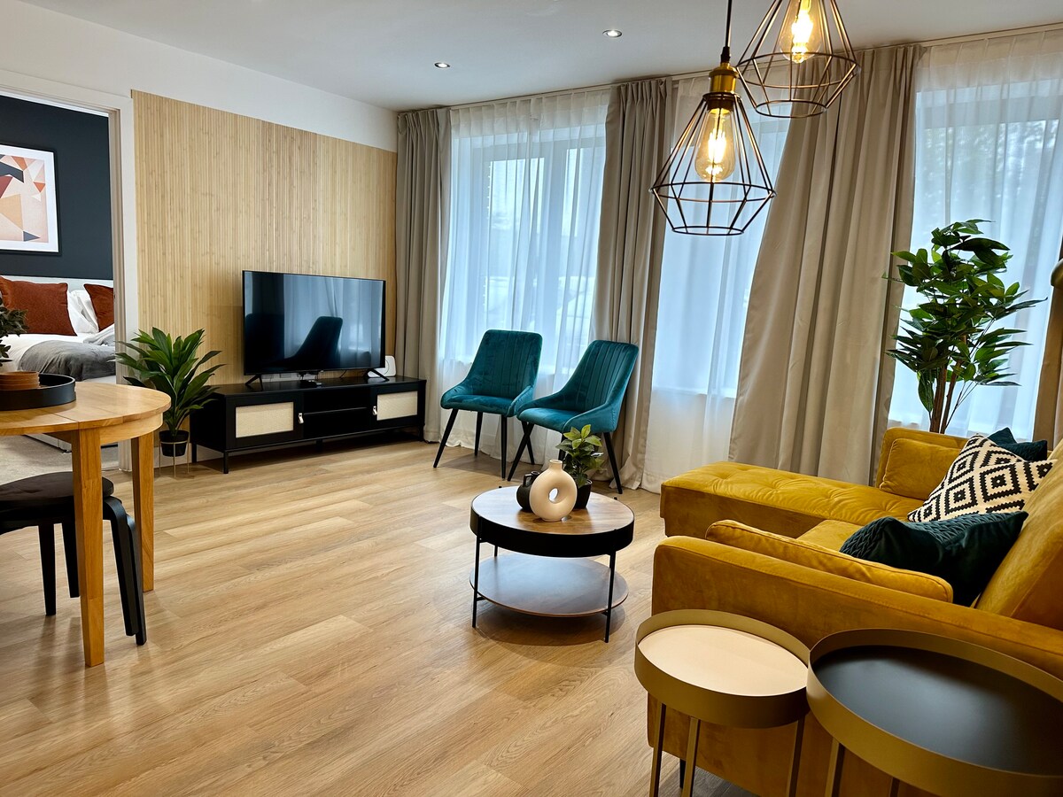 A Brand new Luxurious 1 Bed Apartment with a Sofa Bed styled with premium oak furniture. Its Bright, Spacious & Comfortable Situated conveniently across from Emirates Old Trafford and merely a 5-minute stroll to the legendary Manchester United Stadium, it offers a prime location. Moreover, a brief 5-minute walk will lead you to the tram stop, providing direct access to the bustling City Center. Experience the perfect blend of history, sports, and entertainment during your stay