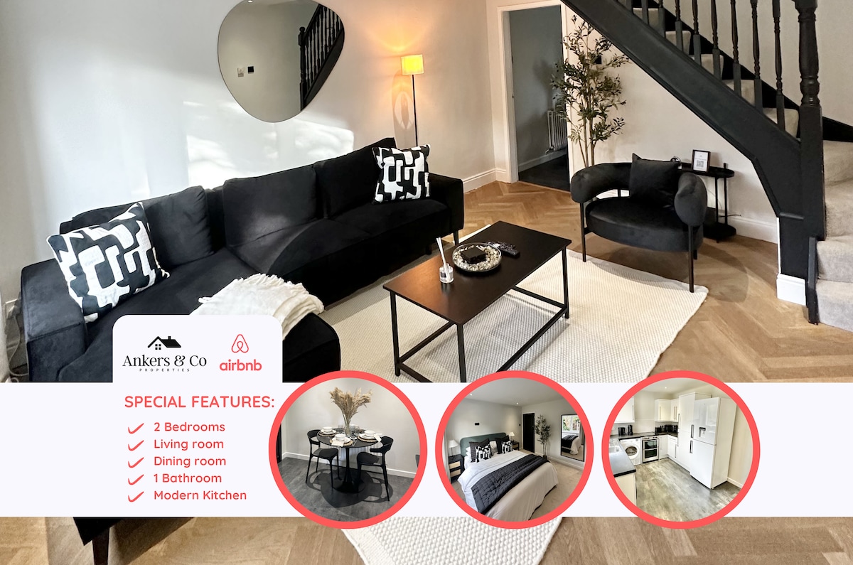 These 2 units of modern 1-bed flats at 10 Vicarage Grove, Eccles is an excellent choice for guests seeking comfort, convenience, and easy access to Greater Manchester. The property is just a short walk from Eccles railway station and Eccles Metrolink, offering frequent rail and tram services into Manchester city centre, Salford, MediaCityUK, and beyond. These strong transport links make getting around simple for commuters, leisure travellers, and event visitors alike, while free on-site parking