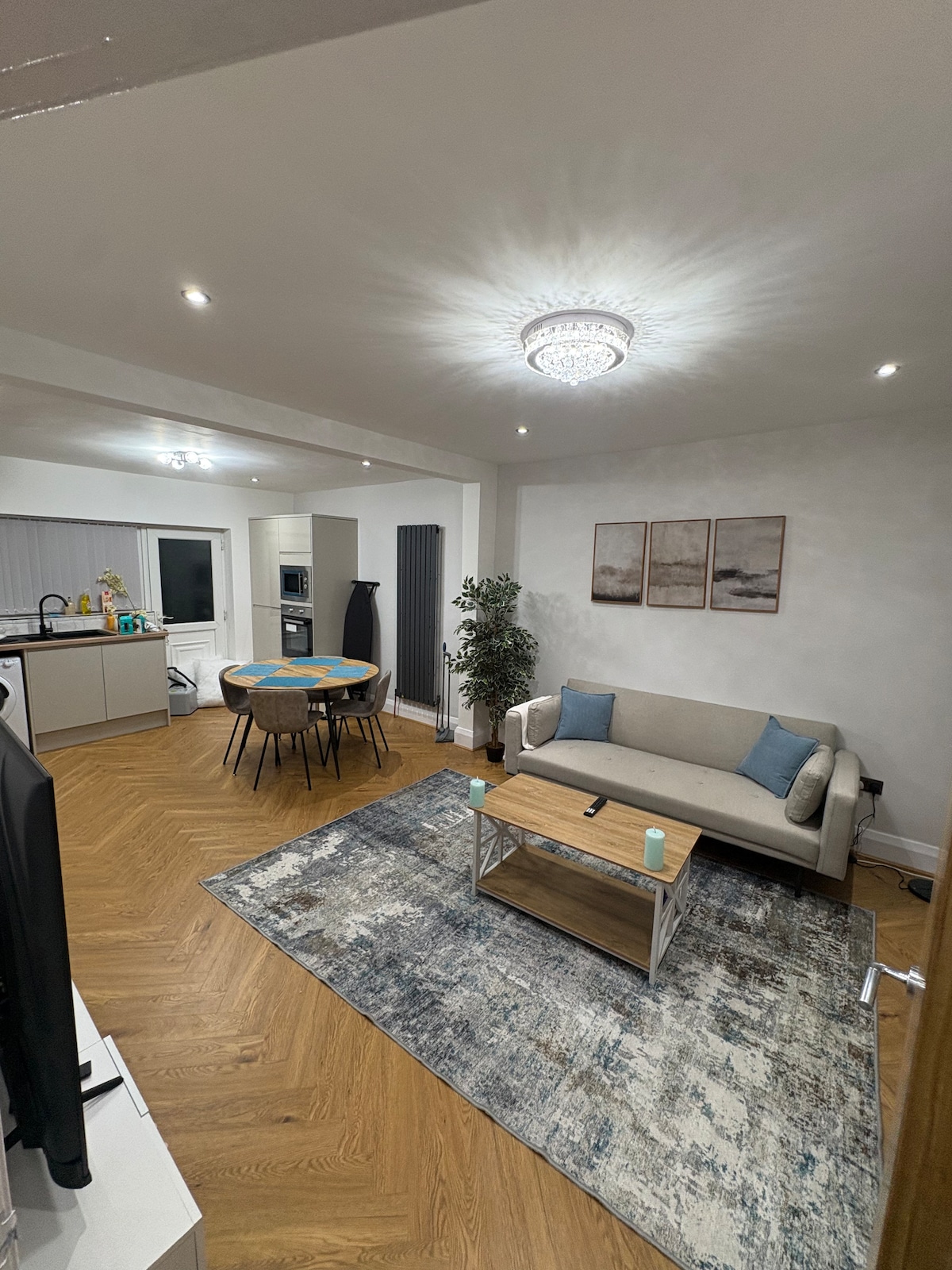 2 double bedroom home with Wifi, Smart HD TVs, Refreshments & large private garden space! Free parking on the carpark opposite the property. 5 min walk STRETFORD TRAM STOP (be in the city centre in 10 mins) 20 min car ride to Manchester Arndale. 7 min car ride to Old Trafford football stadium. 6 min car ride to Old Trafford Cricket Ground. 15 min car ride to Manchester Airport. 20 min car ride to Heaton Park for Festivals. Secured entry and complimentary refreshments included.