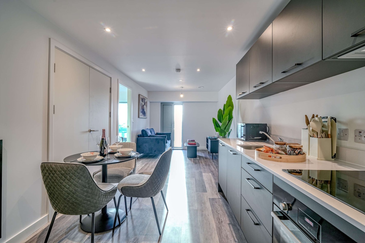 Stylish and modern, this 2 bedroom apartment is located near Manchester’s Media City with its burgeoning social scene, bars and restaurants. There are great transport links (tram located right outside) into the city centre, and is perfect for up to 4! It has two double beds and all the amenities you'll need for a comfortable stay. Whether you are here for business or leisure, this apartment will cater for your every need.