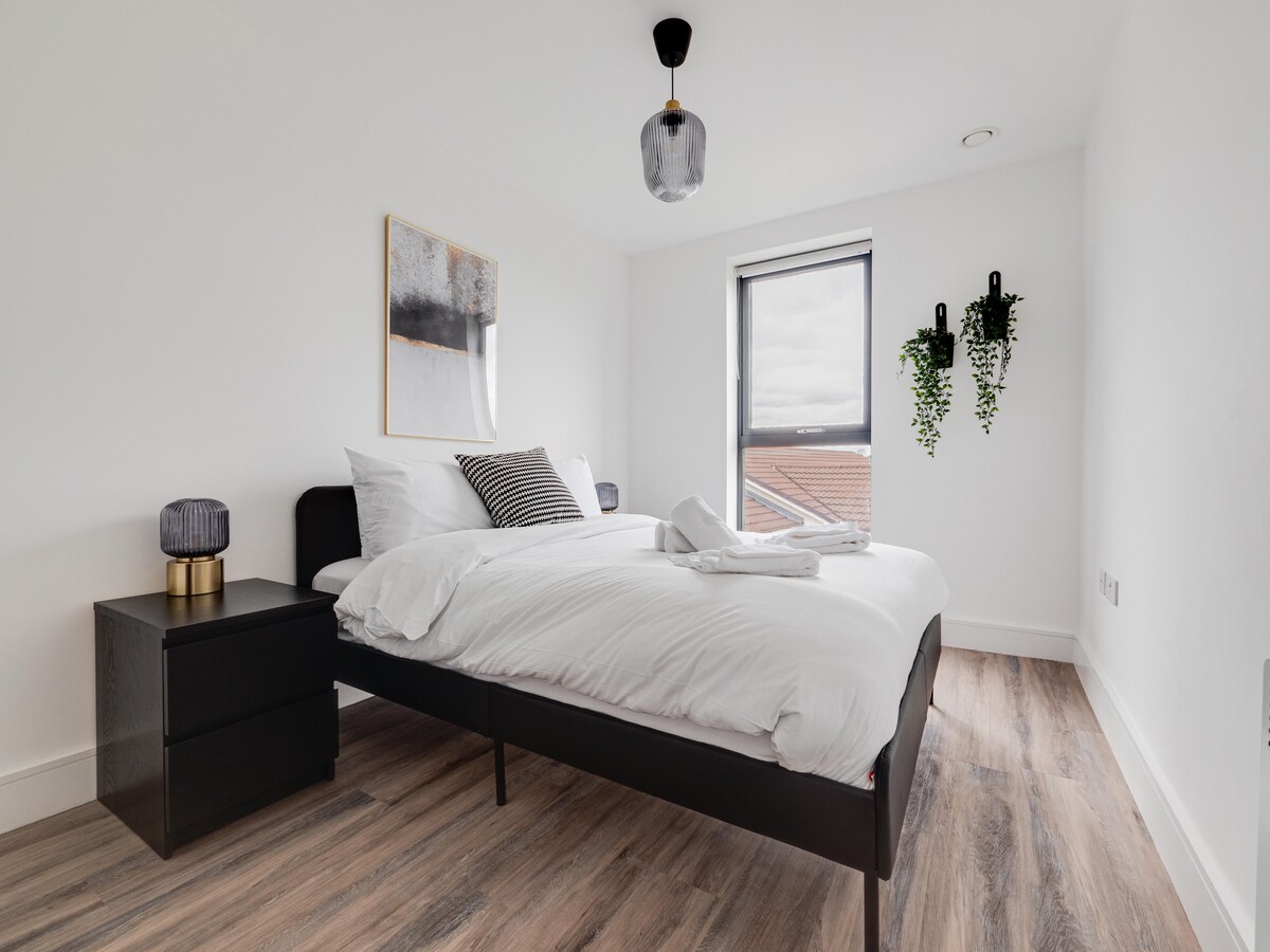 These 2 units of modern 1-bed flats at 10 Vicarage Grove, Eccles is an excellent choice for guests seeking comfort, convenience, and easy access to Greater Manchester. The property is just a short walk from Eccles railway station and Eccles Metrolink, offering frequent rail and tram services into Manchester city centre, Salford, MediaCityUK, and beyond. These strong transport links make getting around simple for commuters, leisure travellers, and event visitors alike, while free on-site parking