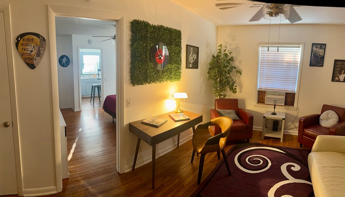 Escape to our cozy & peaceful studio space just minutes from Mammoth Cave National Park. Located on the 2nd story above our detached garage in a country setting. Adventure is all around you with Mammoth Cave National Park a quick 3 minutes away, and the Visitor Center is a 15 minute drive. Nolin Lake is 25 minutes and just 25 minutes to Bowling Green. Perfect for couples, small families, and the solo adventurer. Your Adventure Awaits!