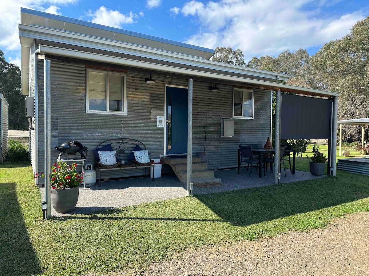 Comfortable 3 room plus bathroom corrugated cabin/cottage in quiet garden setting rear of principle house. Equipped kitchenette and Wifi. NE Victoria has mountains, rivers,vineyards, prolific horticultural region. Close to other tourist towns for day trips. Rich in Gold rush history, sensitively preserving the historic nature of the town. Hotels,brewery, berry farms, hikes, bike trails, elegant dining, boutiques, home wares stores, honey store all within a 10min up hill walk to town.