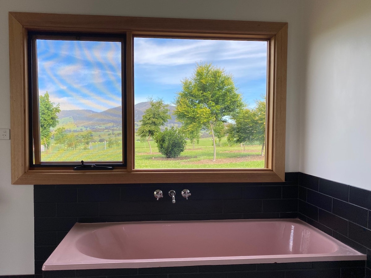 Set on 4 acres, nestling in the peaceful Baranduda Range, with stunning views across the Kiewa Valley to the hills beyond, our Wee Bothy (Scottish word for cottage) offers a cosy and welcoming stay for a couple/family in a renovated former gallery. Pet-friendly, backing onto forest trails, and near Albury/Wodonga with its shops, restaurants and cinemas, as well as historical Yackandandah and Beechworth, it's a must for those who love to walk, run, bike, ski or simply explore or relax - like us!