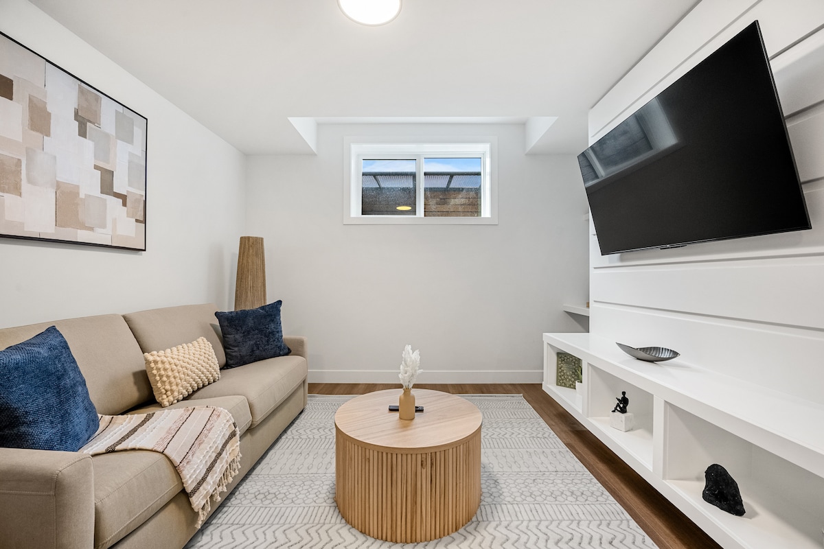 Unwind with the whole family in this peaceful and private walkout basement suite. Enjoy the comfort of your own separate entrance, a cozy living area, a bedroom with a queen-sized bed, in-suite laundry, and views of a beautifully landscaped backyard. The kitchenette comes equipped with an induction cooktop, microwave, and mini fridge—perfect for preparing light meals during your stay. Ideal for solo travelers, couples, or small groups—accommodates up to 4 guests.