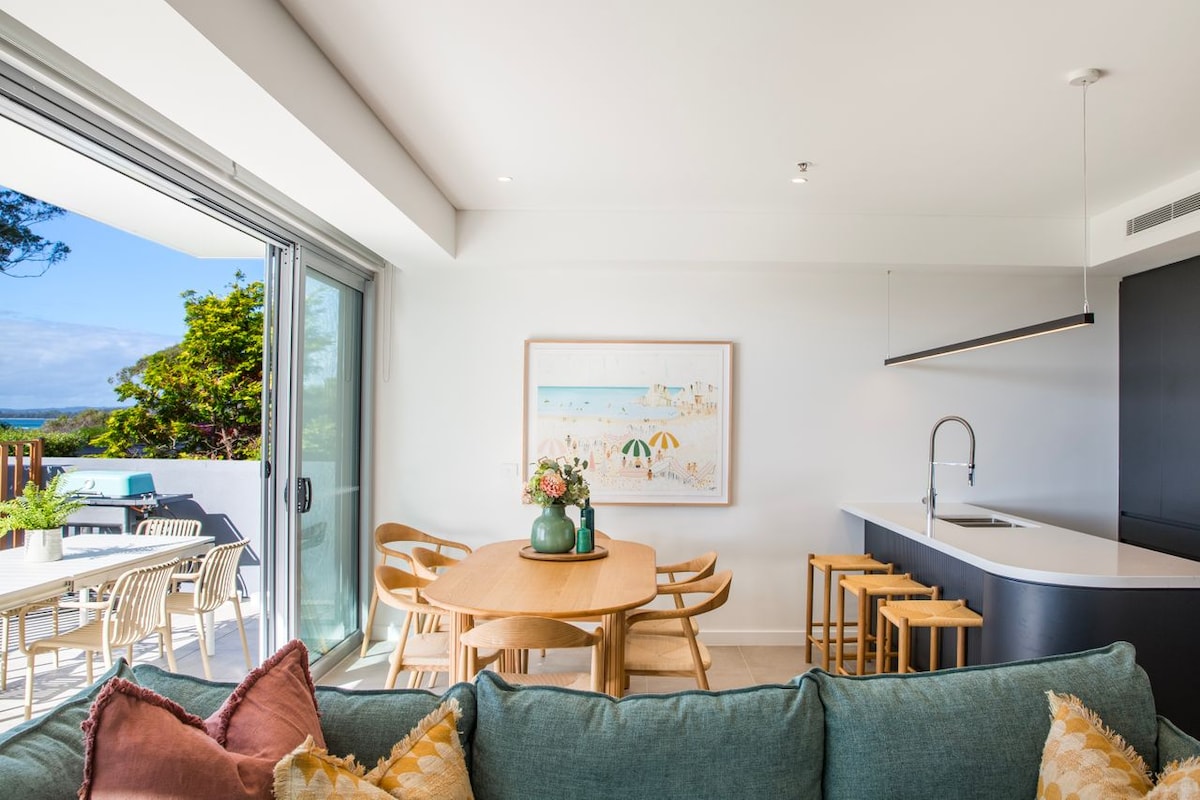 Beautiful new entire house with 180 degree ocean views. This immaculate quality modern home has everything you need for a short or long stay. Floor to ceiling sliding glass doors open the entire wall seamlessly joining the indoor and outdoor areas, showing magnificient views of Kiama and the sea. Wake to see the ocean from the master bed. Relax on the lounge or daybed and enjoy all the modern conveniences you'd expect from a quality home. Almost everything is brand new and quality