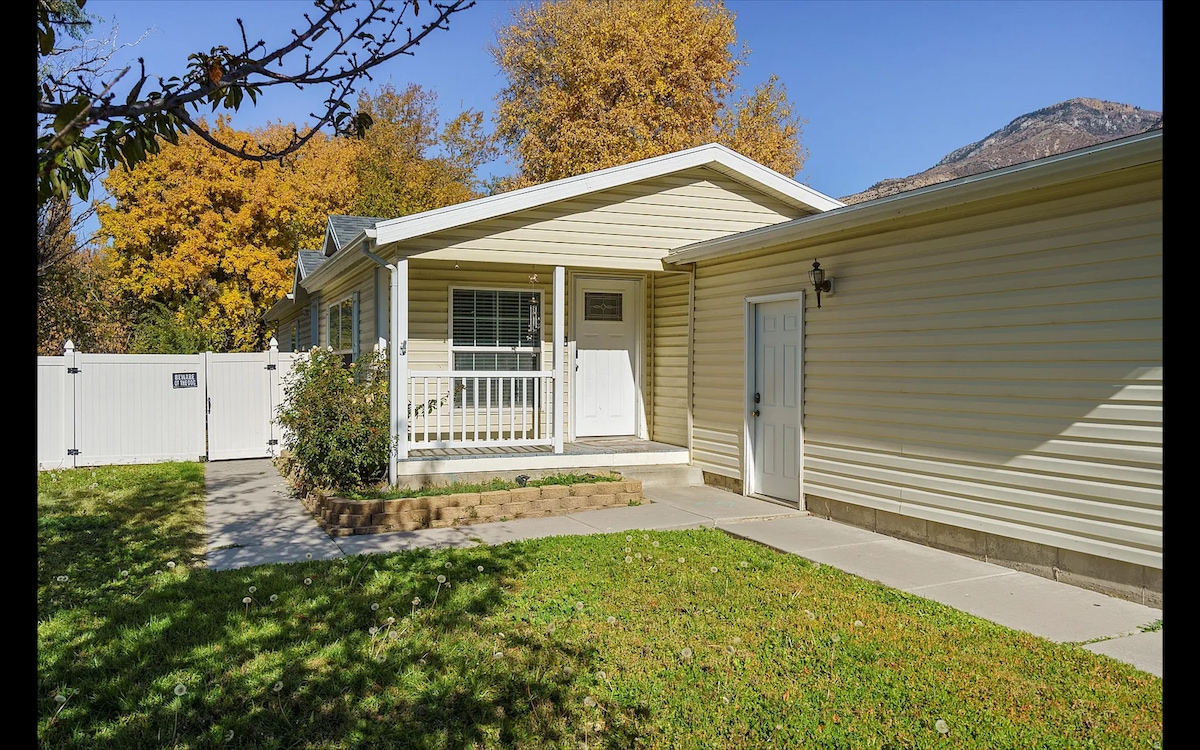 Refresh in our cozy foothills cottage. Family, child, and pet friendly. Play area inside TV room with chalkboard wall, outside park on sand pit and trampoline in fenced backyard. After a long day on the slopes, the trail, or the amusement park, come relax by the outdoor fire pit and dip in the unique stock tank hot tub! .7 of a mile from the nearest waterfall trail head for hiking and biking. 7.4 miles (10 min drive) to Lagoon Amusement park. 19 miles to Snowbasin Ski Resort (25 min drive).