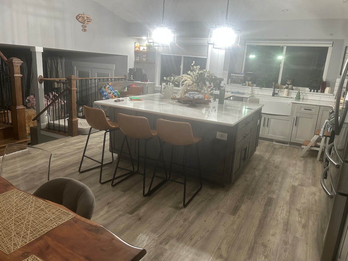 Enjoy our stunning 3-bdrm, 2-bthrm home! Nestled in Ogden with breathtaking views of the Wasatch mountains, this freshly decorated home sleeps 8 comfortably. Unwind in our comfortable living room, equipped with an indoor fireplace, a big screen TV, or relax in one of our 3 bdrms each equipped with a TV where you can stream your favorite shows on a King size bed. Our house has an open floor concept, with a fully stocked kitchen. We're located 20-30 mins from some of the best resorts in Utah!