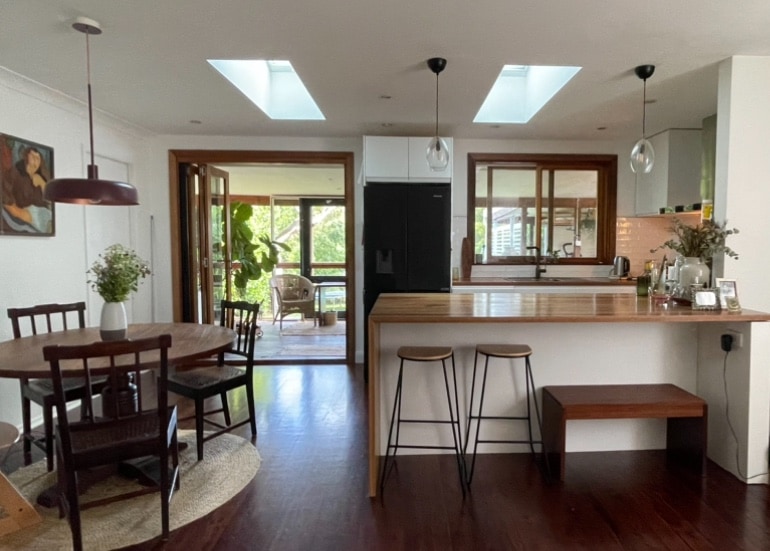 This Iconic sunny Aussie Beach Shack surrounded by native trees is a 3min drive to Surf Club A Bohemian hideaway with 2 cozy Bedrooms & a peaceful, light-filled Sun Room that can convert to a twin single or a king bed 15min Bohdi National Park 1.5km Ettalong Beach 90min CBD Sunny deck Bath with Rain shower Bosch Dishwasher smeg oven Lrge fridge Fenced grass yard Air-Con Ceiling fans Lrg sun lounge umbrella4x5mtr WiFi BBQ Fire Pit Board Games PlayStation toys Hammock Office Desk & Library