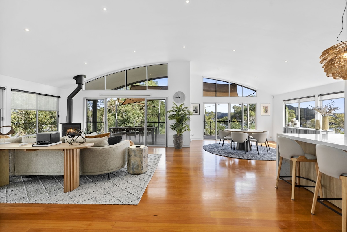 Enjoy the wonderfully central location and remarkable privacy of the Knoll House. This fabulous adults only retreat-style home boasts an enviable location, striking design, heated plunge pool and 270 degree views. A 5 minute walk to both Killcare beach and the cafes and restaurants of Hardys Bay in a secluded yet central location on the edge of the National Park with beautiful beach, bay and bush views. Enjoy outdoor lounging, alfresco dining, recliners and pool. Perfect for two couples.
