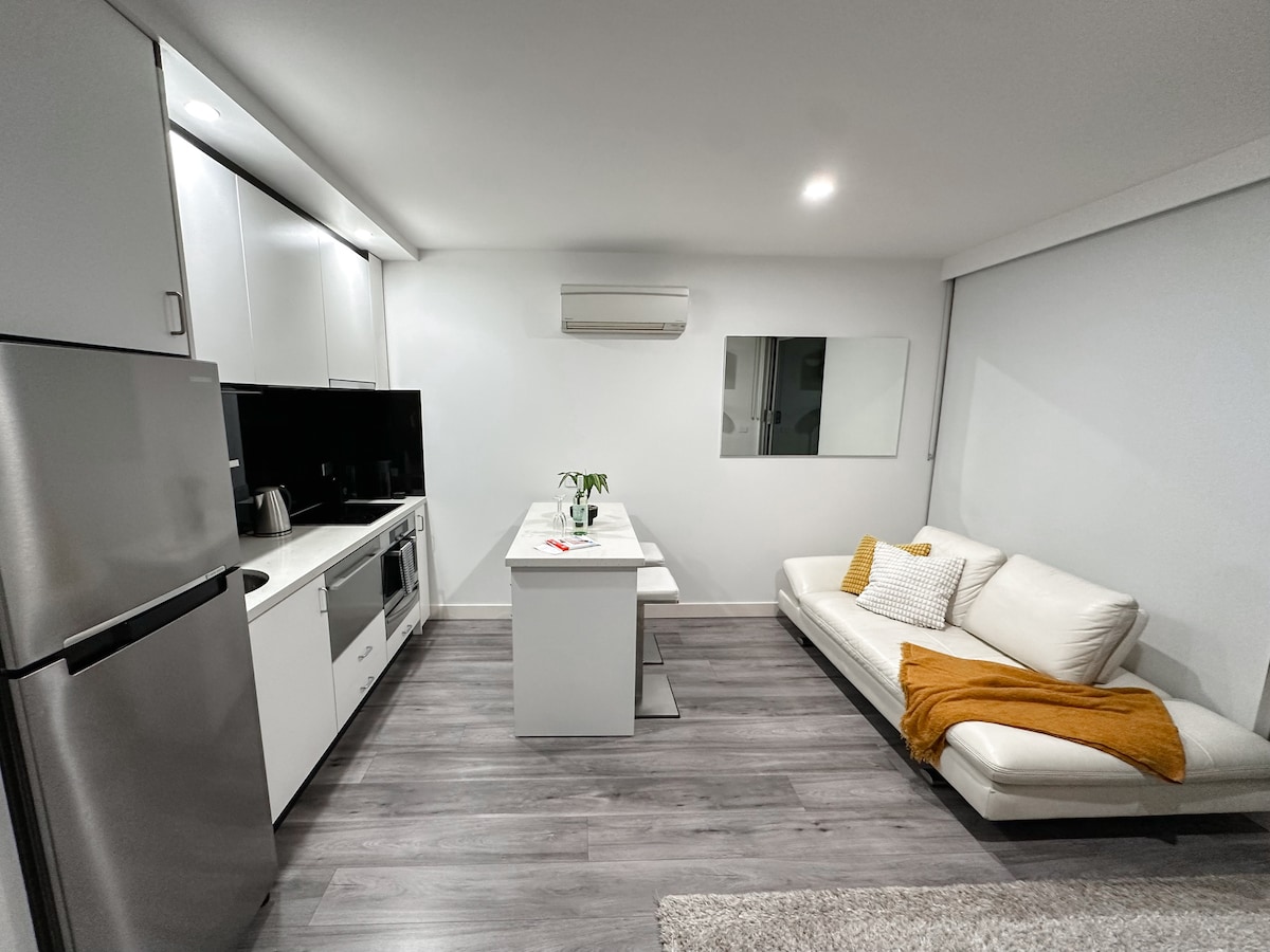Architecture by Peddle Thorp the condo is ~50 sqm in size. There is a queen sized bedroom, a living room with a 3-seat leather sofa, a shower and a fully equipped kitchen. This lovely apartment is situated in heart of Moonee ponds. With bus and tram at the doorstep and the train station is 650 meters away. You have access to the entire Melbourne public transport network. CBD, Universities, Hospitals, and Airports are within easy reach. This location is Walker’s paradise with a walk score o