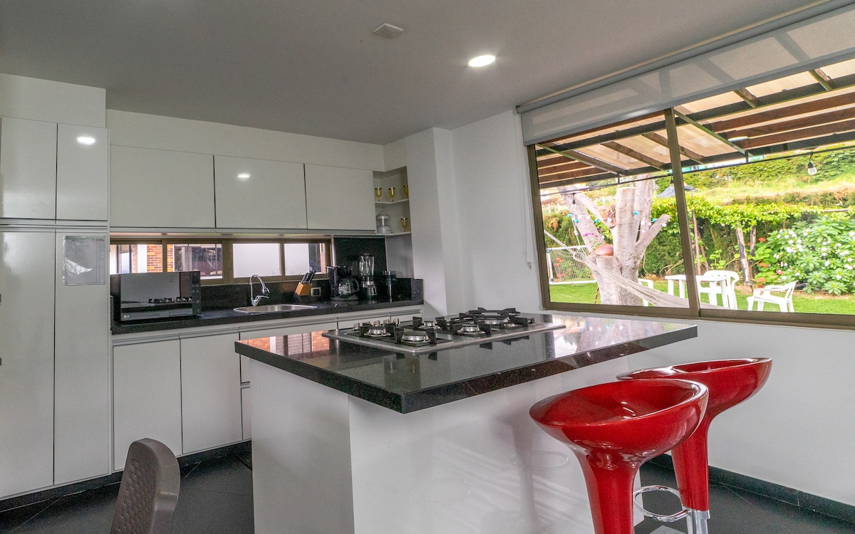 La casa tiene un bello diseño arquitectónico, es cómoda, acogedora, con espacios para el teletrabajo y está muy bien equipada. Es tibia y muy iluminada. Tiene bellos jardines y una vista maravillosa a las montañas. Ideal para amantes de la naturaleza. El clima es agradable y poco lluvioso. Tiene Wi-Fi, TV por cable y agua caliente. A 12 minutos del pueblo en carro y cerca de las principales atracciones de la Villa: Pozos azules, Granja de las avestruces, Infiernito y Parque de los Dinosaurios.