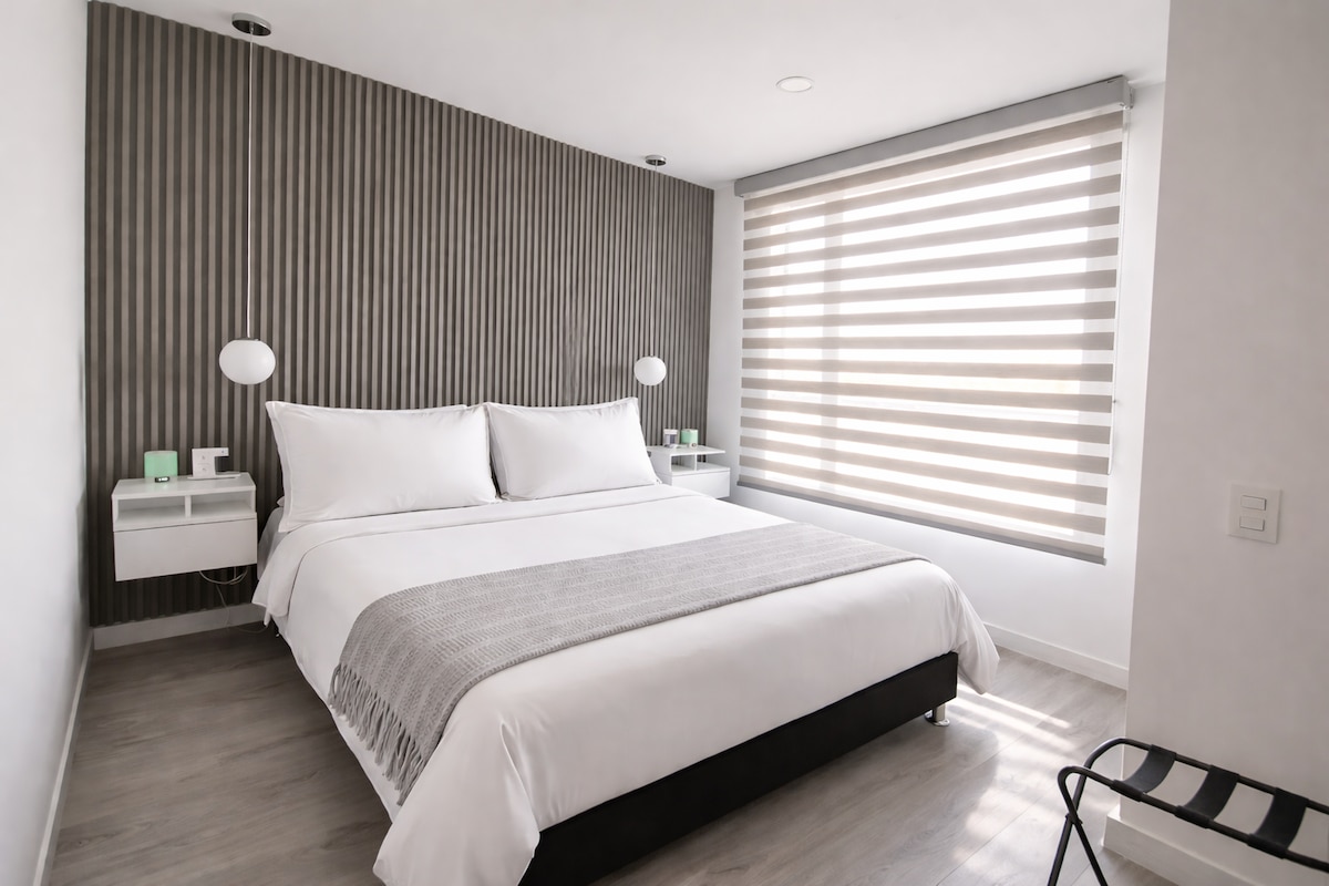Relax in this modern and comfortable loft located in the charming Usaquén, one of the most vibrant areas of Bogotá. Within a few minutes walk, you will find a variety of gourmet restaurants, cafes, and unique boutiques. The room features a queen bed, private bathroom, Wi-Fi, and a workspace ideal for business travelers. Perfect for couples or solo travelers who want to explore authentic Bogotá life in a safe and sophisticated environment. Uroom is exquisite in the details!