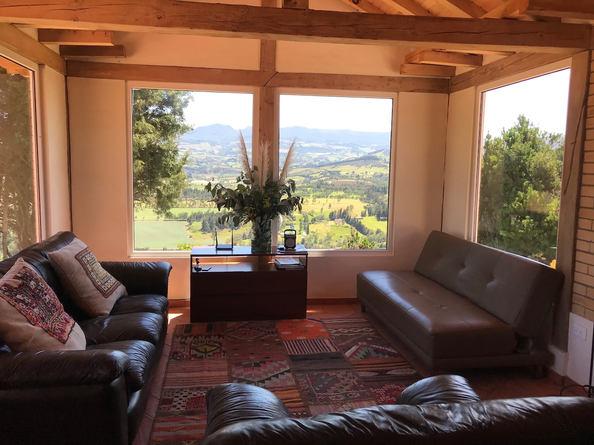 Desconecta de tus preocupaciones en este espacio amplio y sereno alejado del ruido ubicada a 6 km (13 min.)Toca, Boyaca. 167kms desde Bogotá. Ven y disfruta de un espacio de tranquilidad, privacidad y conexión con la naturaleza con una de las mejores vistas de la región. Disfruta de caminatas, deportes acuáticos, y caminos ideales para bicicleta de montaña. La casa finca esta completamente equipada y cuenta con espacio dedicado de estudio para trabajo remoto con Starlink de hasta 150Mbps.