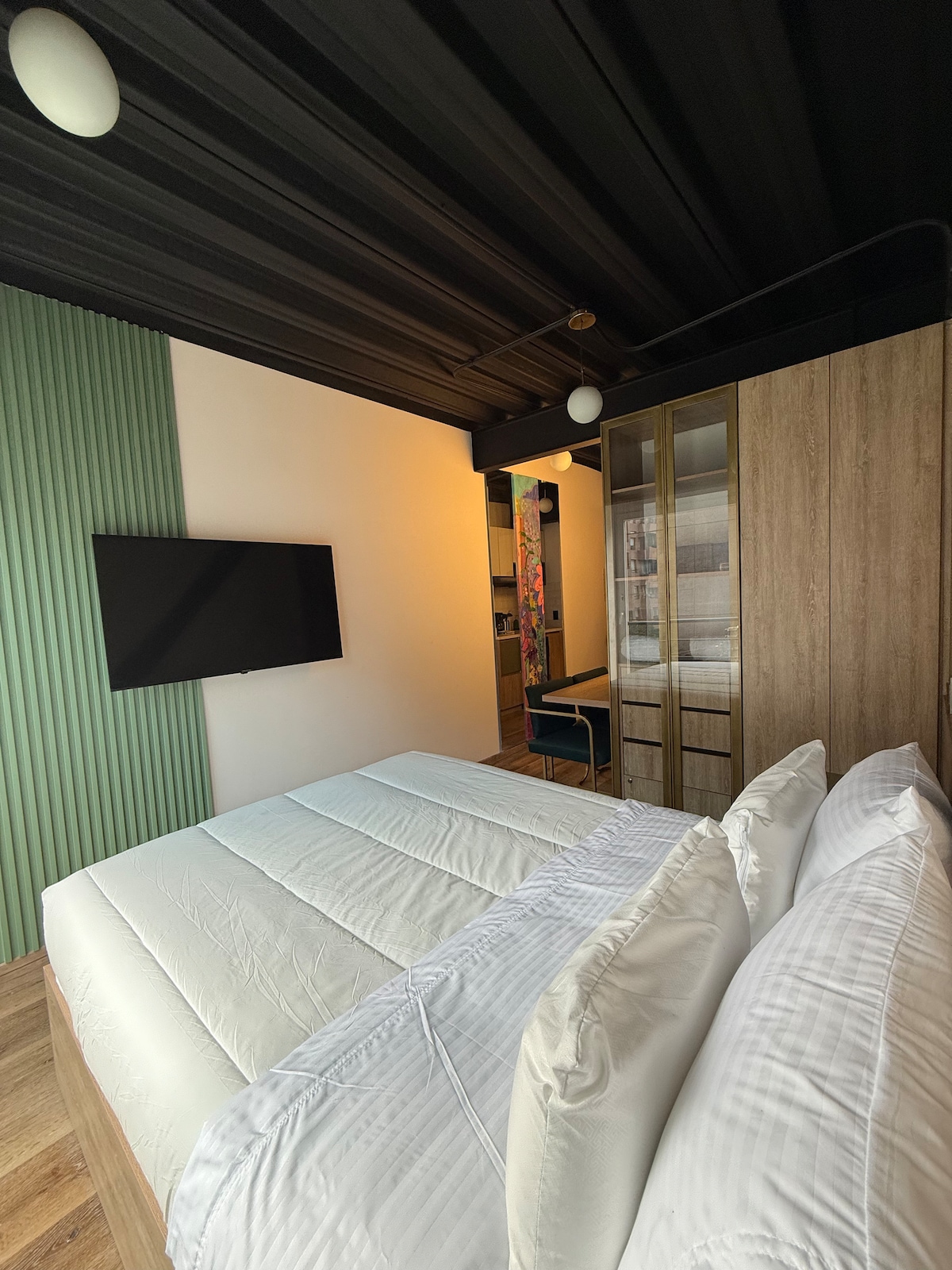 Relax in this modern and comfortable loft located in the charming Usaquén, one of the most vibrant areas of Bogotá. Within a few minutes walk, you will find a variety of gourmet restaurants, cafes, and unique boutiques. The room features a queen bed, private bathroom, Wi-Fi, and a workspace ideal for business travelers. Perfect for couples or solo travelers who want to explore authentic Bogotá life in a safe and sophisticated environment. Uroom is exquisite in the details!