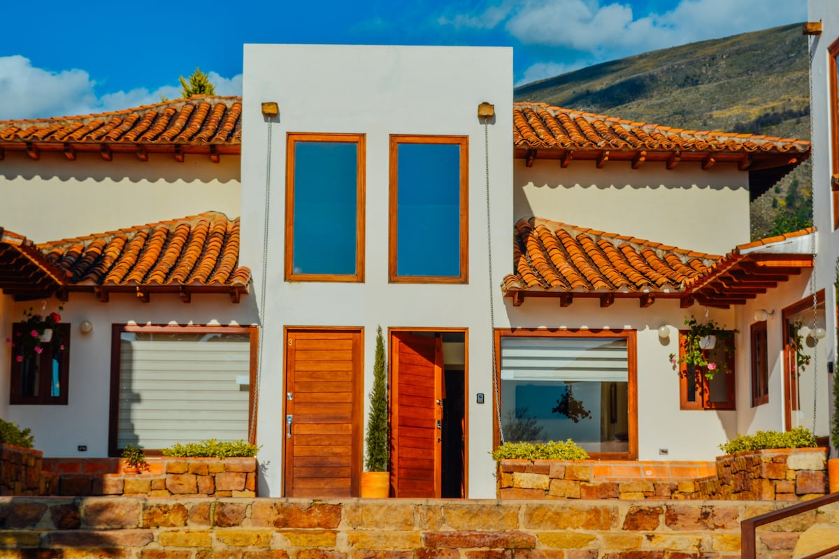 Hermosa cabaña para estrenar. Construida en adobe y madera de forma artesanal, dentro de un condominio campestre. Excelente ubicación en medio de los hatos ganaderos y cultivos autóctonos del Valle del Tundama. Ideal para el descanso familiar, por sus paisajes, tranquilidad y seguridad. A tan sólo 7 minutos en vehículo del Centro de la ciudad. Se pueden practicar caminatas o paseos en bicicleta por sus callejuelas y senderos. Dentro de la propiedad puede disfrutar de un Kiosko, Zona BBQ.