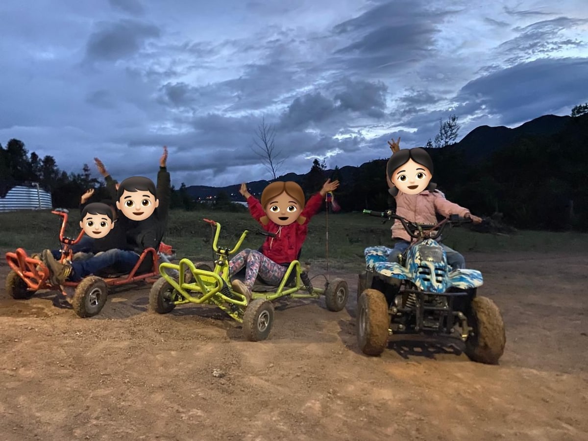 Glamping tipo campamento, compuesto, por cama doble y 2 colchonetas auxiliares, luz, toma de corriente, silla externa, olla cocción, , utensilios de cocina por si deseas preparar alimentos básicos, punto de fuego, los baños son compartidos a 100m y una vista al embalse espectacular. El Bosque consta de 15 hectáreas con senderos ecológicos, 2 lagunas internas, mirador, zona de retos y actividades con Slackline. Adicionales muro de escalada y kayak