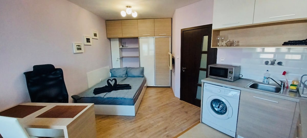 The place to stay when you are in Sofia! Come enjoy one of kind brand new development in Studenstki grad offering luxurious and stylish furnishings, a fully equipped bedroom, kitchen and bathroom with all you need for a comfortable stay. Located right next to the University of National and World Economy (УНСС) the building is unique with its holistic approach to solving your residential needs - from the smooth check in process to a comfortable, relaxing sleep.