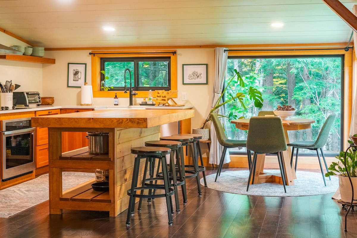 Escape to The Fox Den, a whimsical tiny house tucked along the Brewster River just 1 minute from Smugglers’ Notch Resort. This peaceful riverside retreat blends nature and charm—sometimes even featuring visits from Jinx, the resident fox. Spend your days hiking or fishing, then unwind with a true Nordic spa experience: soak in the shared riverside hot tub, heat up in the new barrel sauna, and cool off in the river. A perfect Vermont getaway for simple, unplugged relaxation.