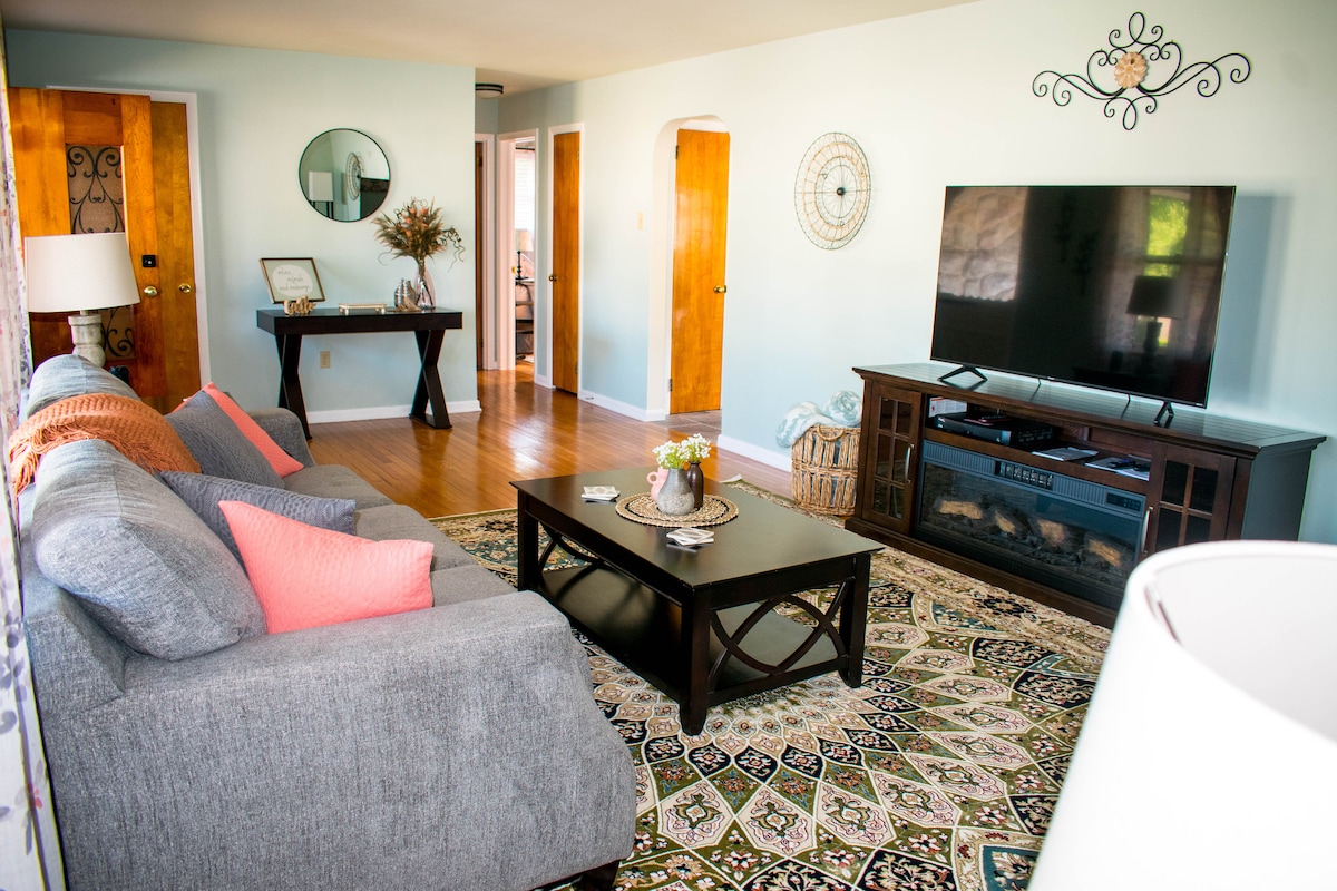 This beautiful, spacious home is located in scenic Berks Co. Guests will enjoy comfortable accommodation with plenty of room to spread out: A large kitchen w all the essentials for cooking, 2 living room spaces, a Smart TV and WIFI throughout, 5 bedrooms (2 bedrooms have king beds), 2.5 baths, lots of outdoor spaces including a large deck w outdoor seating and pellet grill, a swing set for childen, a firepit, and a fenced in outdoor pool (2ft to 9ft) available Memorial Day to Labor Day.
