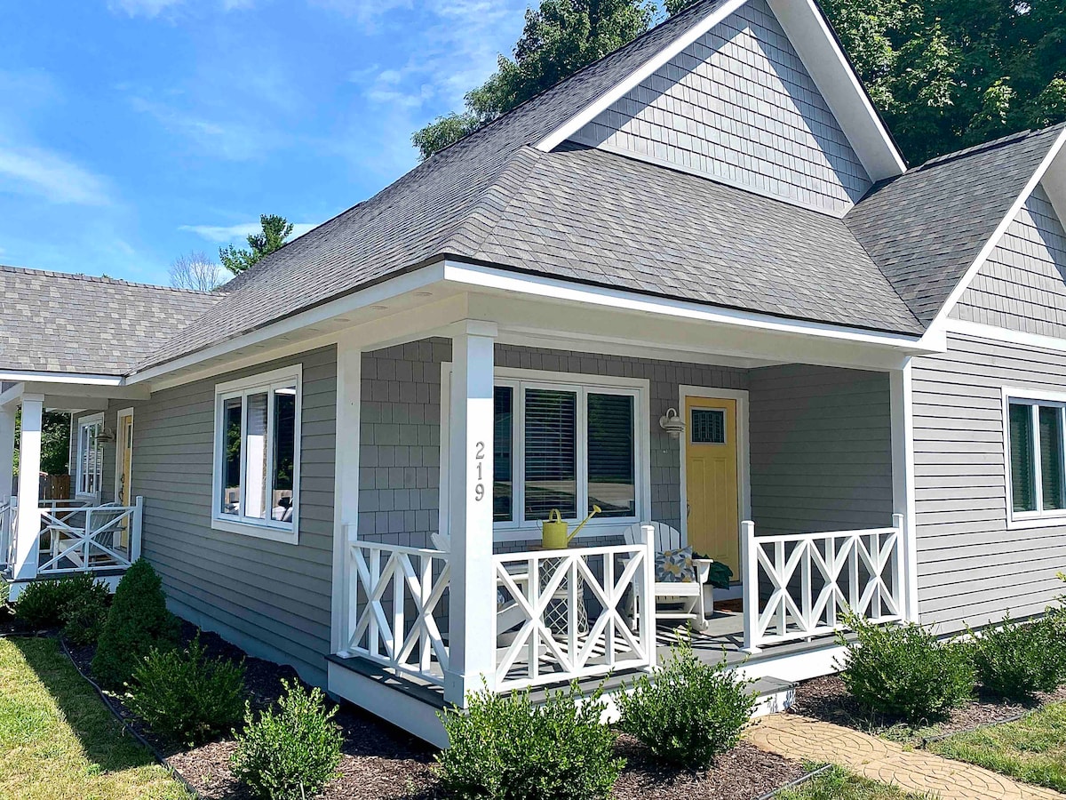 The perfect up north getaway! A beautiful newly constructed home with all new furnishings. Walk to the beach, swim in the lake, have a BBQ on the deck, walk to the ice cream shop, and enjoy s'mores on the campfire in the backyard! On Saturday mornings walk to the farmer's market. Street music in town on the weekends. Boyne Mountain 5 miles away. Book your family vacation with hiking, biking, skiing, ice skating, swimming, kayaking, fishing, boating, sailing, golfing, and the list goes on!