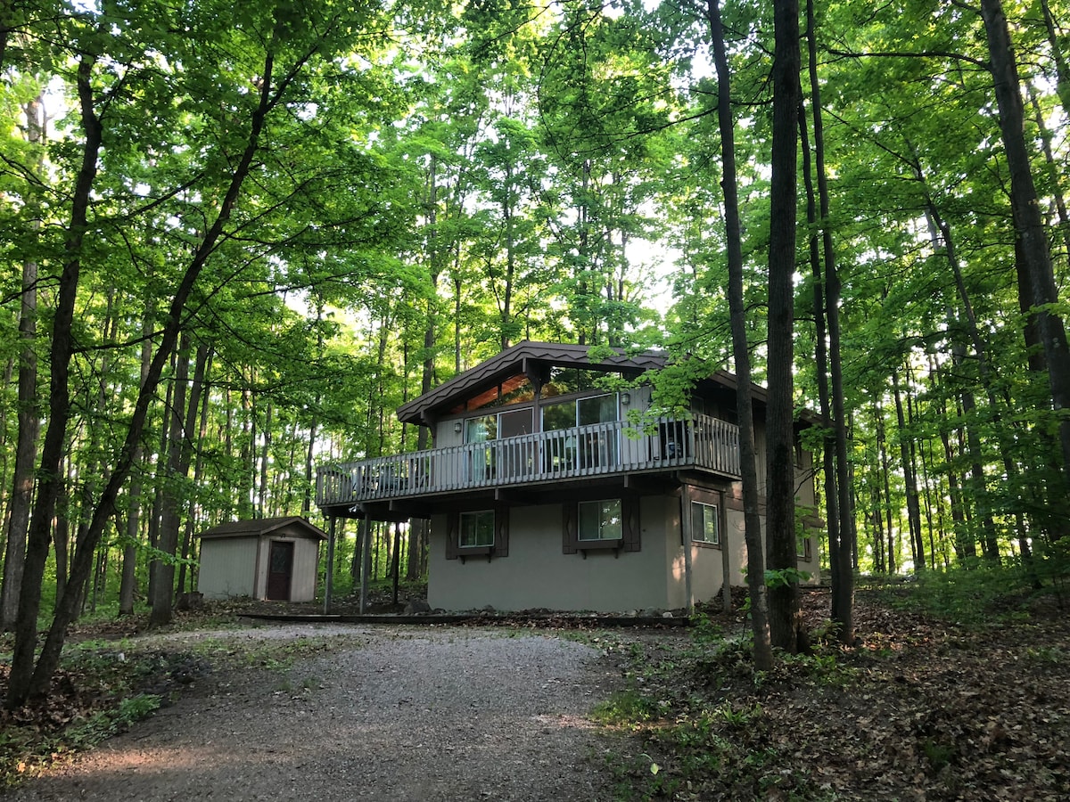 平静之地,舒适的小木屋,位于20英亩/湖泊的树林中