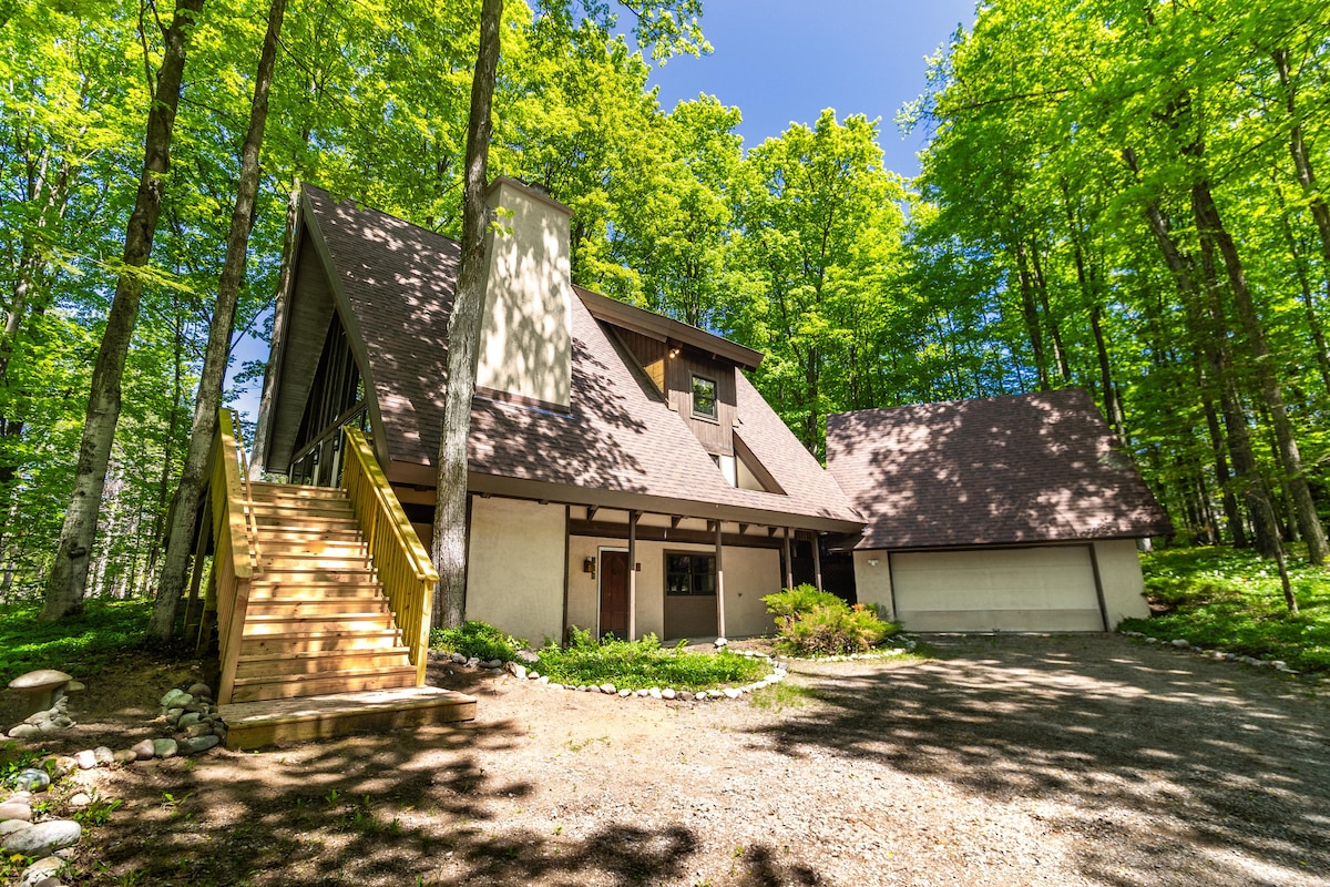 Cozy A-frame perfectly located minutes from downtown Harbor Springs. Nestled in the trees across from a nature preserve so you get that “cabin-in-the-woods” feel while being close to everything the area has to offer. Perfect homebase for “Up North” adventuring: •5 min from downtown Harbor Springs •20 min from Petoskey •40 min to Mackinaw •10 min to Nubs Nob/Highlands •5 min to Tunnel of Trees M-119 Home Features: •2 bdrms w queen beds •Indoor & Outdoor firepit •Stocked kitchen •Front/back deck
