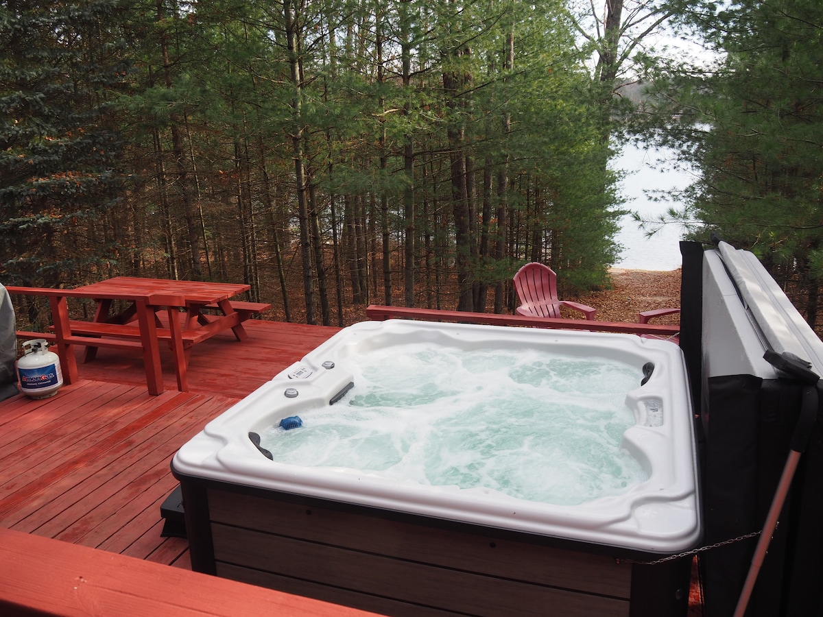 小熊山度假木屋-私人湖滨,带水疗!