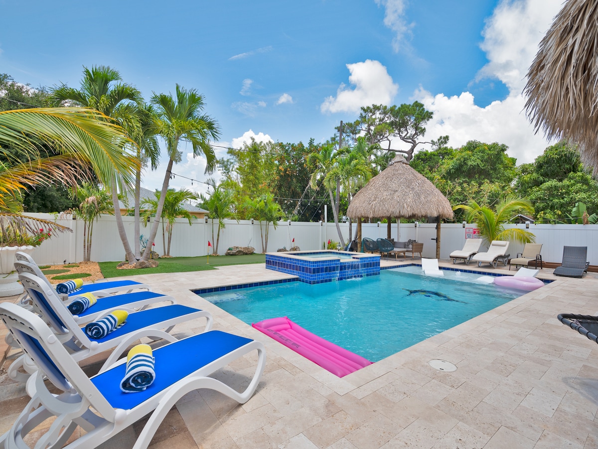 This Luxurious private home in beautiful Boca Raton is only a short drive to the beach. Enjoy ultimate privacy in our brand new heated pool and jacuzzi. Plenty of shopping and restaurants all within minutes. Kick back and relax in this newly renovated, ultra private, luxury vacation home. Just bring your suitcase and bathing suit and enjoy! Fully stocked kitchen with all you'll need........Indoor or out. Desk/ Workstation for home office and five oversized Smart TV's for entertainment.