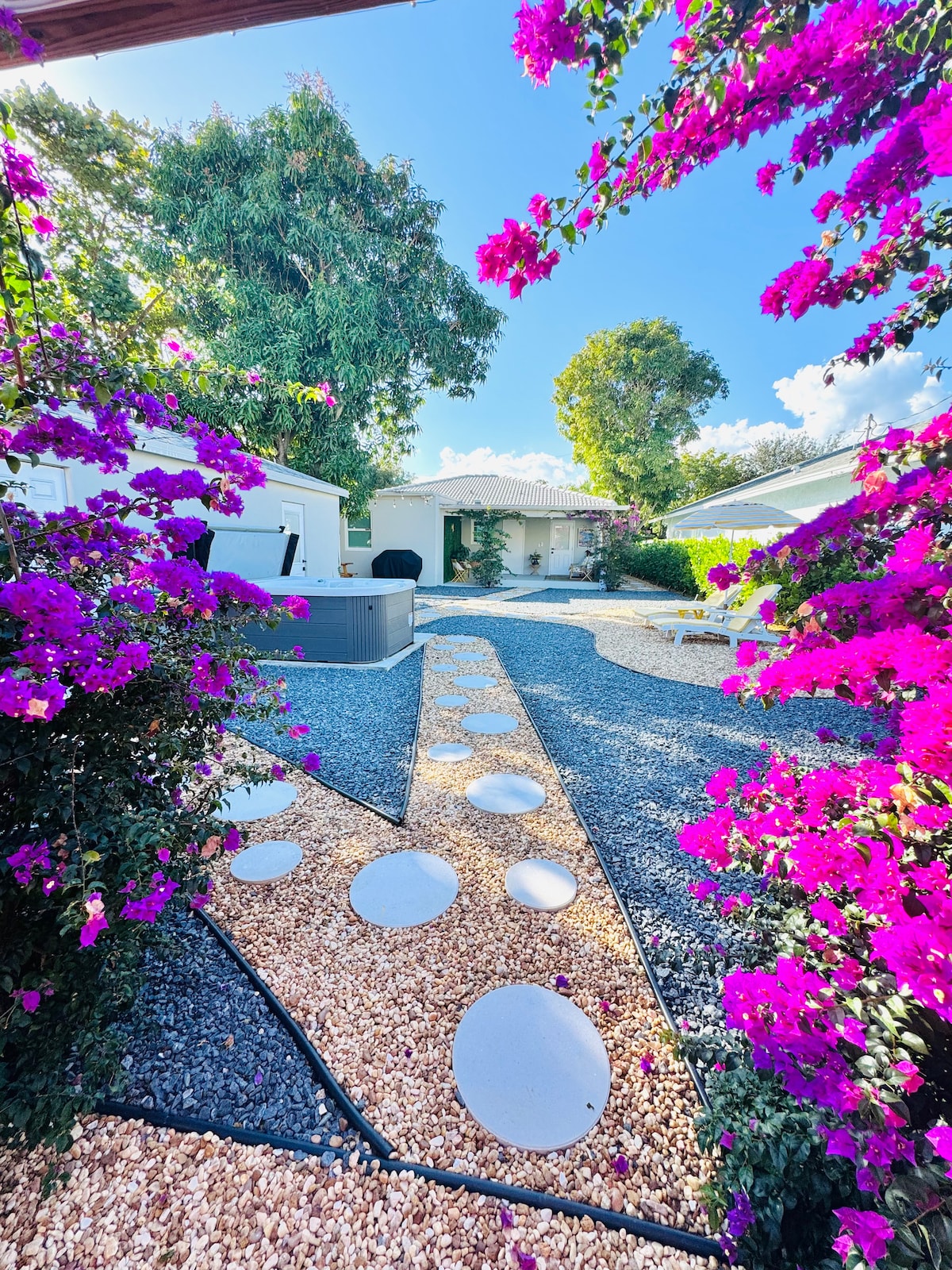 Enjoy the Putting Green, Hammock, Hot Tub, and Garden! You will be renting this home located on a beautiful property minutes from downtown West Palm, the beach, and airport. Newly renovated house with gorgeous garden backyard Shared backyard with hot tub (guest house is also listed separately on Airbnb) Smart TVs with WiFi Fully stocked kitchen with induction cooktop, convection oven, microwave, & dishwasher Washer & Dryer Laundry Soap & Haircare products Fresh Towels Free street parking
